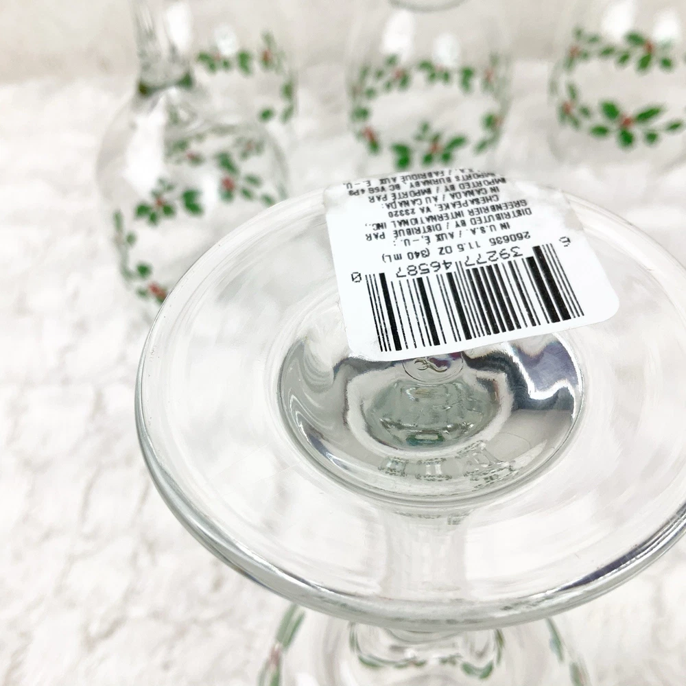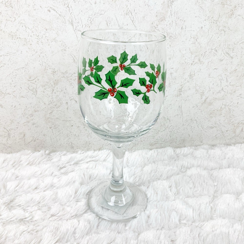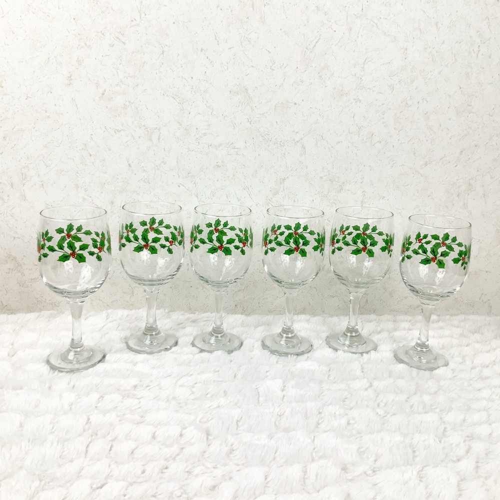 Brand new Libbey Set of 6 wine glasses Holiday holly Berry leaves pattern Perfect for christmas! 11.5 oz