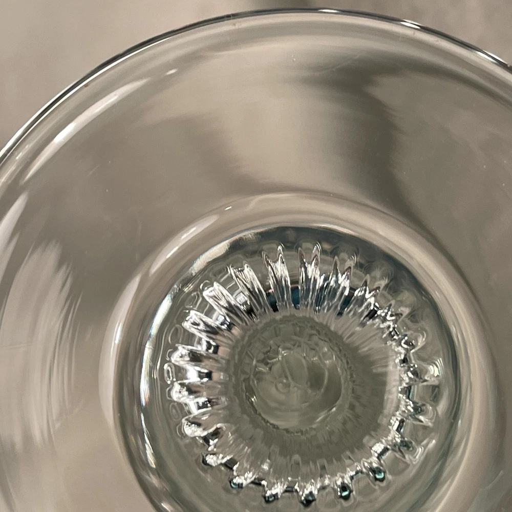 This set includes four-piece Libbey Audrey water goblets made of clear glass with a ribbed stem design. These round goblets have a capacity of 12 oz and measure 3" in diameter and 7.25" in height. They are vintage pieces from the 1970s, featuring a mid-century modern style and elegant hand-blown glass production. Each goblet weighs 3.2 lbs and bears the Libbey brand. Perfect for all occasions, these decorative goblets add a touch of sophistication to any table setting. Excellent condition. No chips or cracks.