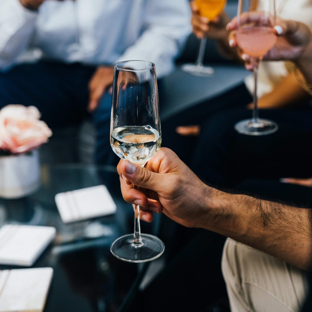 The Libbey Signature Greenwich 4-piece Champagne Flute Glass Set possesses unprecedented brightness, clarity, and resilience. Admire its stable foot and caress its pulled stem seamlessly transitioning to the angular bowl. Breathe in the effervescence and bouquet. And touch your lips to the finely honed rim to complete your sensual journey.Luxurious Signature family is known as the finest stemware on the market; state-of-the-art ClearFire glass composition provides thinner walls of superior brilliance and strengthReinforced flat foot delivers extra stability; pulled stem creates solid and seamless transition to slender, angular champagne bowl; laser-cut rim offers even, beadless, chip-resistant edgeDurable and dishwasher safe for quick, easy cleanup; to help preserve your glassware, please Free Shipping Over $49.99* Details Libbey Signature Greenwich Champagne Flute Glasses, 8.25-ounce, Set of 4 - Set Product Description: The Libbey Signature Greenwich 4-piece Champagne Flute Glass Set possesses unprecedented brightness, clarity, and resilience. Admire its stable foot and caress its pulled stem seamlessly transitioning to the angular bowl. Breathe in the effervescence and bouquet. And touch your lips to the finely honed rim to complete your sensual journey. Luxurious Signature family is known as the finest stemware on the market; state-of-the-art ClearFire glass composition provides thinner walls of superior brilliance and strength Reinforced flat foot delivers extra stability; pulled stem creates solid and seamless transition to slender, angular champagne bowl; laser-cut rim offers even, beadless, chip-resistant edge Durable and dishwasher safe for quick, easy cleanup; to help preserve your glassware, please refer to our general glass handling guidelines Made lead-free Includes 4, 8-ounce champagne flute glasses TBD1