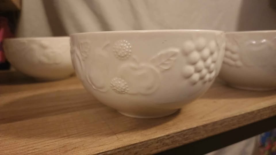 1. These bowls are absolutely stunning—the embossed fruit detail adds such a classy, vintage touch to any table setting. They're the perfect size for salads, sides, or even snacks, and the off-white color blends beautifully with any decor. I love that they’re microwave and dishwasher safe, making cleanup a breeze. The quality is fantastic, and they feel sturdy yet elegant. A must-have for anyone who loves stylish yet practical serving pieces!