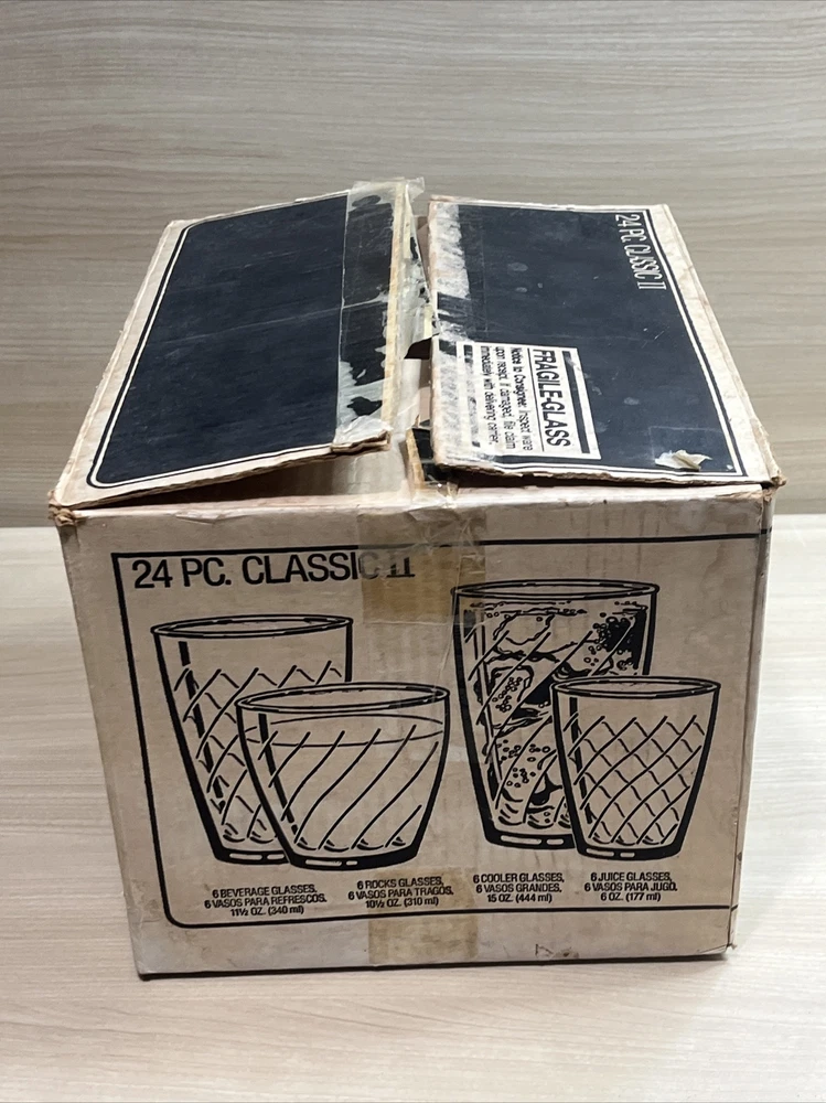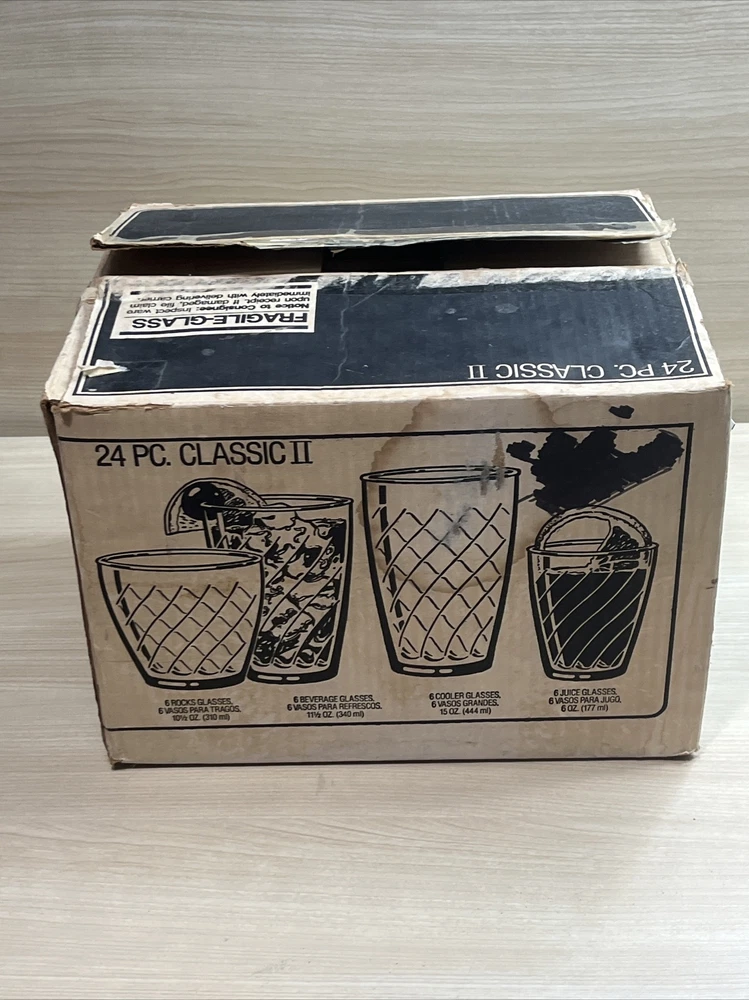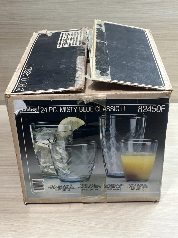Libbey Vintage Glassware 24 Pc Set Misty Blue Classic II 82450F NOS. All glasses are in brand new unused condition all glasses have been inspected. NO CHIPS OR CRACKS. Will include original box and packaging. All sales are fully guaranteed with free returns. Please check out my store for more great items and great deals. Please contact me with any questions or concerns.