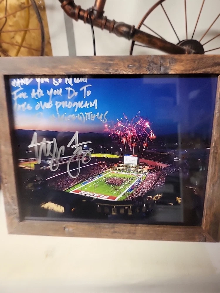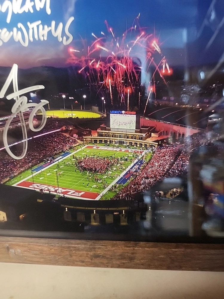 Liberty Flames Football Stadium Picture Of Championship Game Signed By Hugh Freeze. Great condition. 9"x11" framed