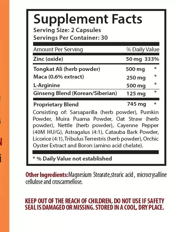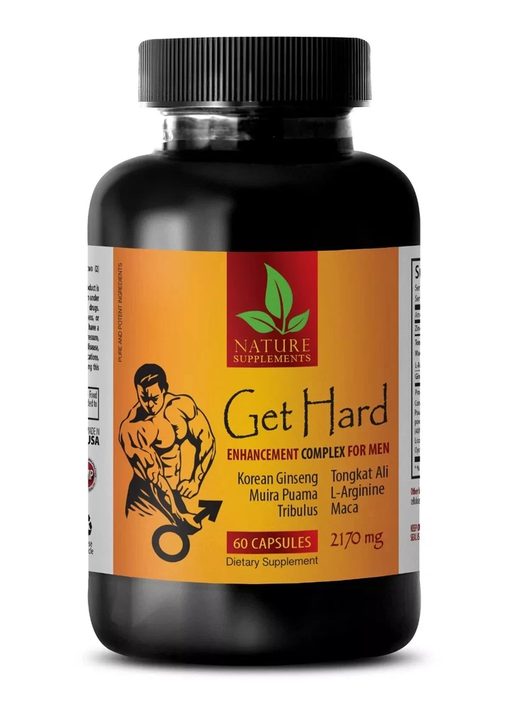 GET HARD PILLS ENHANCEMENT COMPLEX FOR MEN WITH MACA, HORNY GOAT WEED, TONGKAT ALI, KOREAN GINSENG, MUIRA PUAMA... Improve sexual well-being Improve the overall heart health Increase blood flow Support energy levels Significant role in athletic performance Overall brain health Made In USA 1 Bottle 60 Capsules GET HARD PILLS DESCRIPTION Improves circulation, protects heart health, boosts sexual energy, helps in weight loss, and improves mood. Ginseng is used to promote energy, increase the blood supply and improve blood circulation. Tongkat ali, is a flowering plant from Southeast Asian countries including Malaysia, Indonesia and Thailand. Maca is gaining popularity as a supplement and superfood. Muscle mass Tongkat ali may increase muscle mass and strength due to its purported effects on testosterone levels. It is sometimes used as to boost athletic performance, physical strength, and to promote fat loss. Tongkat ali may also help to increase muscular strength in older adults. By this way, it contributes to the entry health of a person. Circulation booster High energy levels, improve metabolism and cognitive function are the consequences of a sluggish circulatory system. It can improve cognition, boost energy levels and improve recovery. Thanks to that, the body will receive additional oxygen and necessary nutrients to cells and body parts systems. High blood pressure reduction Eases the tension in arteries and blood vessels does wonders for the overall cardiovascular health. The heart has to work extra hard to pump blood through tight, constricting blood vessels, causing a rise in blood pressure. This can be a major contributor to heart issues, as constricted blood vessels are more likely to become blocked. Improves the overall heart health and prevent an acceleration of heart issues. Sexual health improvement Increases the Libido and give healthy sexual thoughts. It can be used to help with sexual function and sexual sensation as well as sex drives and satisfaction. Also, give extra energy and stamina to help with prolonged intimacy. Basically it carry extra blood to the genital areas and this is what helps feel much better. Fertility Maca is used to promote sexual function of both men and women. It boosts Libido and increases endurance. It is also used to balance the body’s properties and increase fertility. Maca influences the production of estrogen, testosterone and progesterone supporting balance where it is needed. Maca may help to stimulate the maturation of follicles within an ovary as well. Aphrodisiac Maca has a long history of use as an aphrodisiac in both men and women. Maca may work by normalizing sex properties like testosterone, progesterone and estrogen. Maca is a nutritional powerhouse loaded with minerals, vitamins, amino acids and essential fatty acids. It’s possible that maca’s rich nutrient profile supports normal elements production. By this way, maca enhances sexual desire and sex drive. Energy enhancer Maca is rich in vitamins, minerals, essential acids and protein. These nutrients naturally support energy levels and helps in recovery from different issues. Maca provides the body with a natural energy due to its high carbohydrate levels. Maca root has significant role in athletic performance for these exact reasons. Taking maca into the daily routine could be an excellent way to bring a spring back into the step. Improvement of the mood Ginseng has the ability to improve mood and mental function. It improves calmness and mental arithmetic. Ginseng has significant stress- related properties and can be used for the help with stress-induced issues. All that makes it a powerful medicinal options for stress and a great natural supplement and way to improve fatigue. Supplement Facts Serving Size: 2 Capsules Servings Per Container: 30 OTHER INGREDIENTS: Gelatin Capsule, Rice Powder, Vegetable Magnesium Stearate, Silica. SUGGESTED USE: For adult men, take two (2) quick release capsules daily, preferably with a meal. For better results, take this product 60 to 90 minutes before sexual activity. CAUTION: This product is intended for men. Use as directed. If any adverse reactions occur, immediately stop using this product and consult your doctor. If you are taking any medications or have any medical condition, consult your doctor before use. Not intended for use by persons under the age of 18. Store in a cool, dry place. If seal under cap is damaged or missing, do not use. KEEP OUT OF THE REACH OF CHILDREN. DO NOT USE IF SAFETY SEAL IS DAMAGED OR MISSING. STORE IN A COOL, DRY PLACE. *These statements have not been evaluated by the Food and Drug Administration. This product is not intended to diagnose, treat, cure, or prevent any disease. GREAT QUALITY PRODUCT