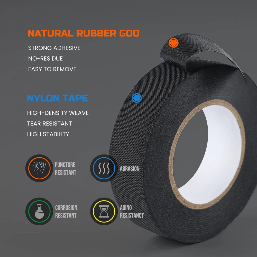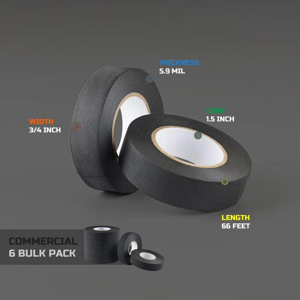 This electrical tape is a game-changer! The 6-pack is a great value, and the no-residue fabric tape sticks strong without leaving a mess. Perfect for wiring harnesses, high temps, and automotive use—holds up better than regular vinyl tape. Easy to tear by hand and wraps smoothly. Super durable and reliable—definitely stocking up on more!