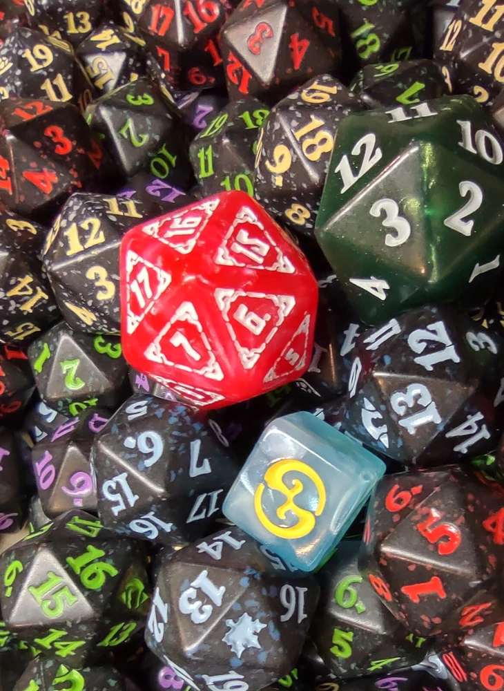 Life Counter ~ SPINDOWN LOT of 25 ~ 2 Oversized Dice PLANAR DIE Mix D20