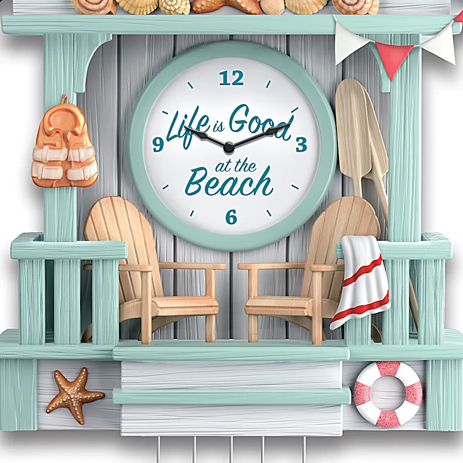 Life Is Good Beach Cuckoo Clock with Wave Sounds Handcrafted Coastal Decor