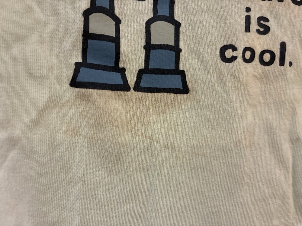Life Is Good Kids Boys Robots 100% Cotton Short Sleeve Crusher Shirt Lt Green XS. Condition is pre-owned. Smoke free, pet free home. Shipped via USPS Ground Advantage. In fair condition. There are large stains on the front. Free of rips.