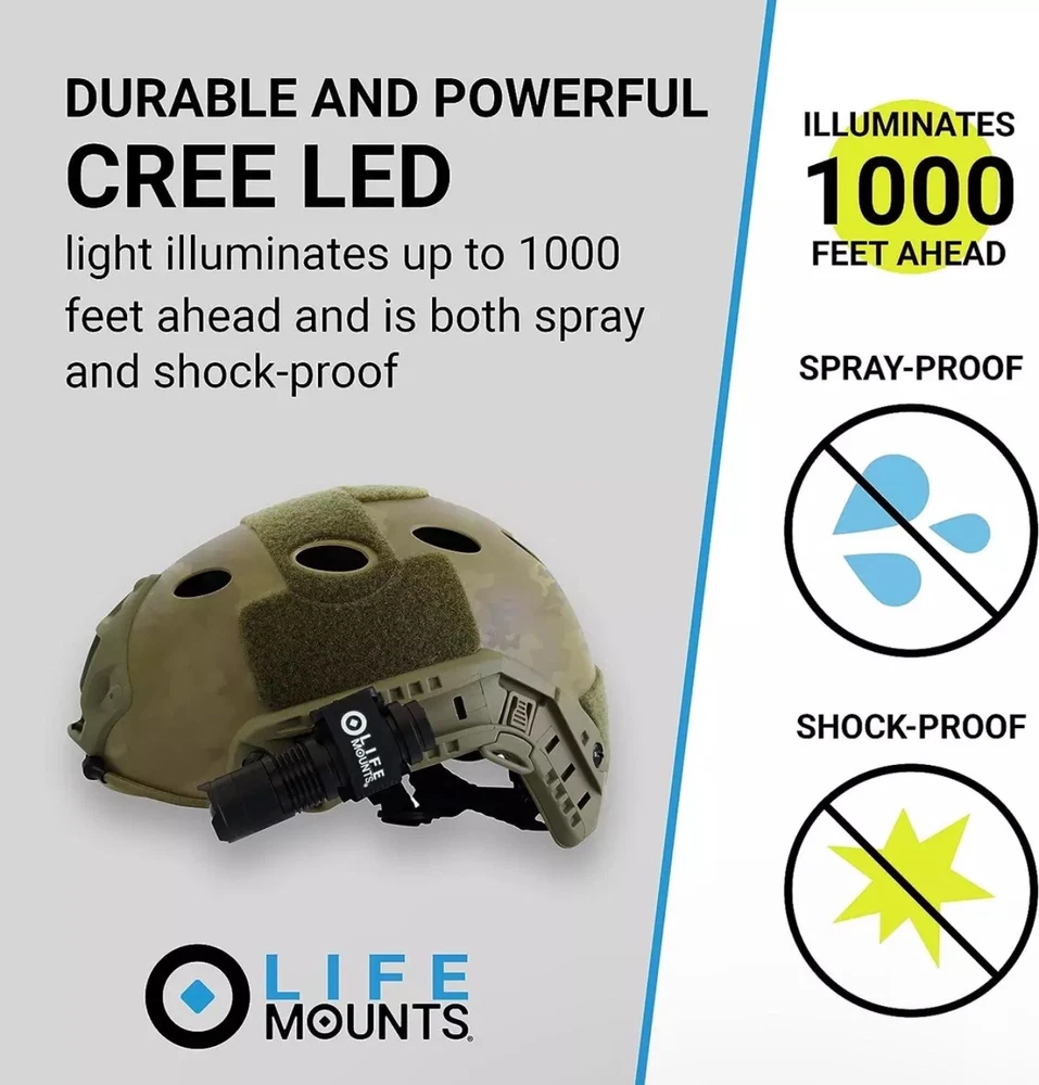 Life Mounts - LED Tactical Helmet ARC Rail Light Stay Safe & Light Your Way NEW