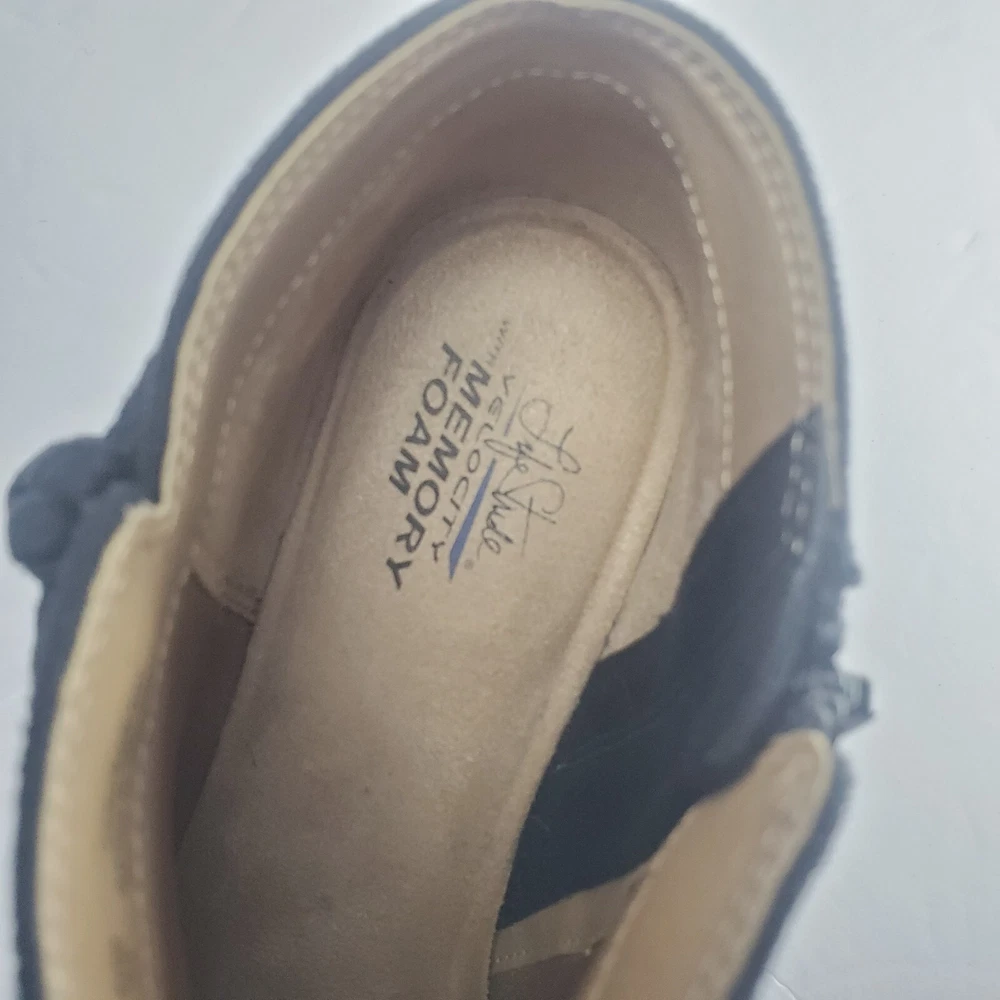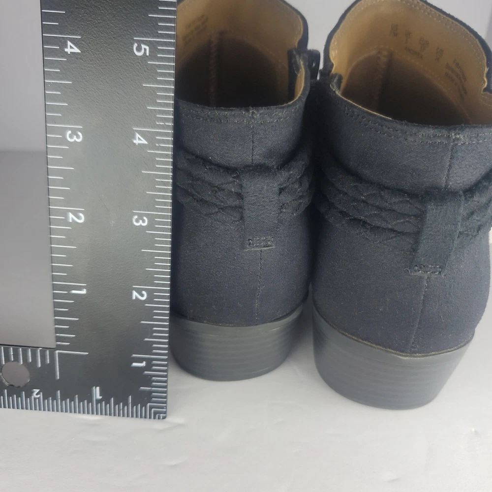 These ankle booties are super comfortable with the memory foam cushioning—perfect for all-day wear! The black fabric upper looks stylish and holds up well. They’re in amazing pre-owned condition, like new. Fits true to size, great for casual or dressy outfits. Love them!
