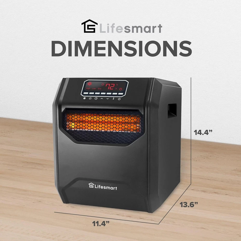 The item was shipped through US Stock, so it arrived faster than expected All 100% genuine, brand new and unopened, 24 hours message reply Brand LIFESMART GLOBAL Special Feature Tip-Over Switch, Multiple Heat Settings, Safely Designed Cabinet, Easy to Control, Overheat Protection, Washable Air Filter, Programmable Timer, Adjustable ThermostatTip-Over Switch, Multiple Heat Settings, Safely Designed Cabinet, Easy to Control, Overheat Protection, Washable Air Filter, Programmable Timer, Adjustable Thermostat Color Black Form Factor Cabinet" or "Pedestal Indoor/Outdoor Usage Indoor About this item High Powered Heating: Infrared programmable space heater designed to efficiently warm large rooms, equipped with fireproof cabinets, a spacious digital display, and a remote for enhanced accessibility