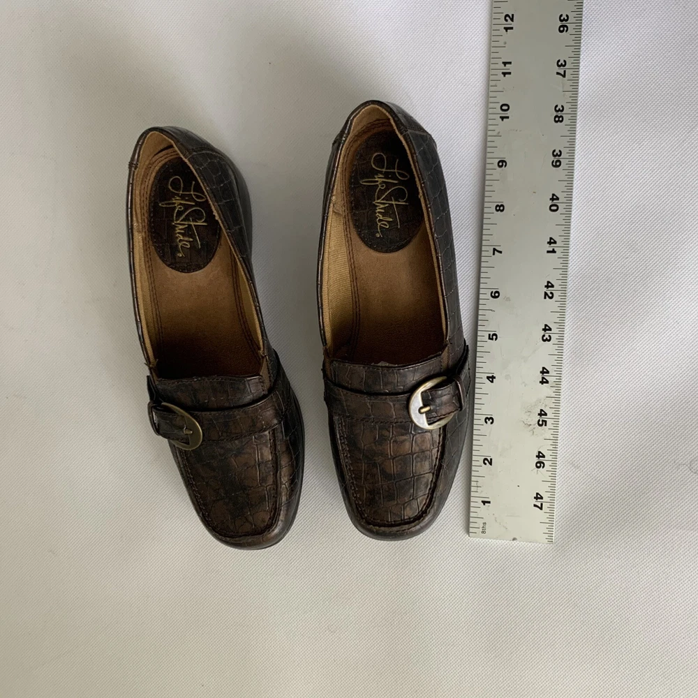 - Life Stride Monopoly Faux Leather Croc Alligator Comfort Slip On Show Brown Embossed Womens Size 6.5 See photos to c ompare your personal measurements to the garment's measurements to ensure proper fit. Excellent preowned condition. FAST Shipping! 1-3 business days. Offers welcome! Tags: everyday fashion stylish trendy classic spring summer fall winter seasons apparel comfy comfortable easy to wear classy casual favorite 14 y2k 80s 90s versatile essential career professional work clothes serious environment business casual interview teacher intern apparel employee worker workwear fashion stylist workplace dress code office attire polished mature sophisticated corporate careerwear businesscore put together light dark academia nerdy gossip girl waldorf oxford soft boy literary librarian professor refined collegiate understated