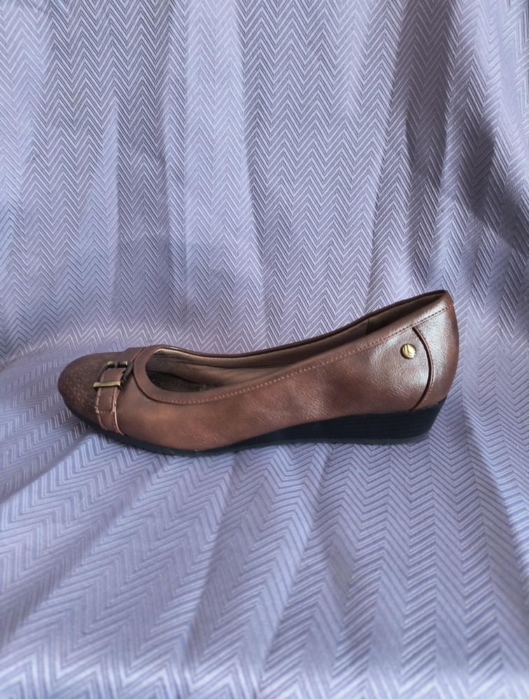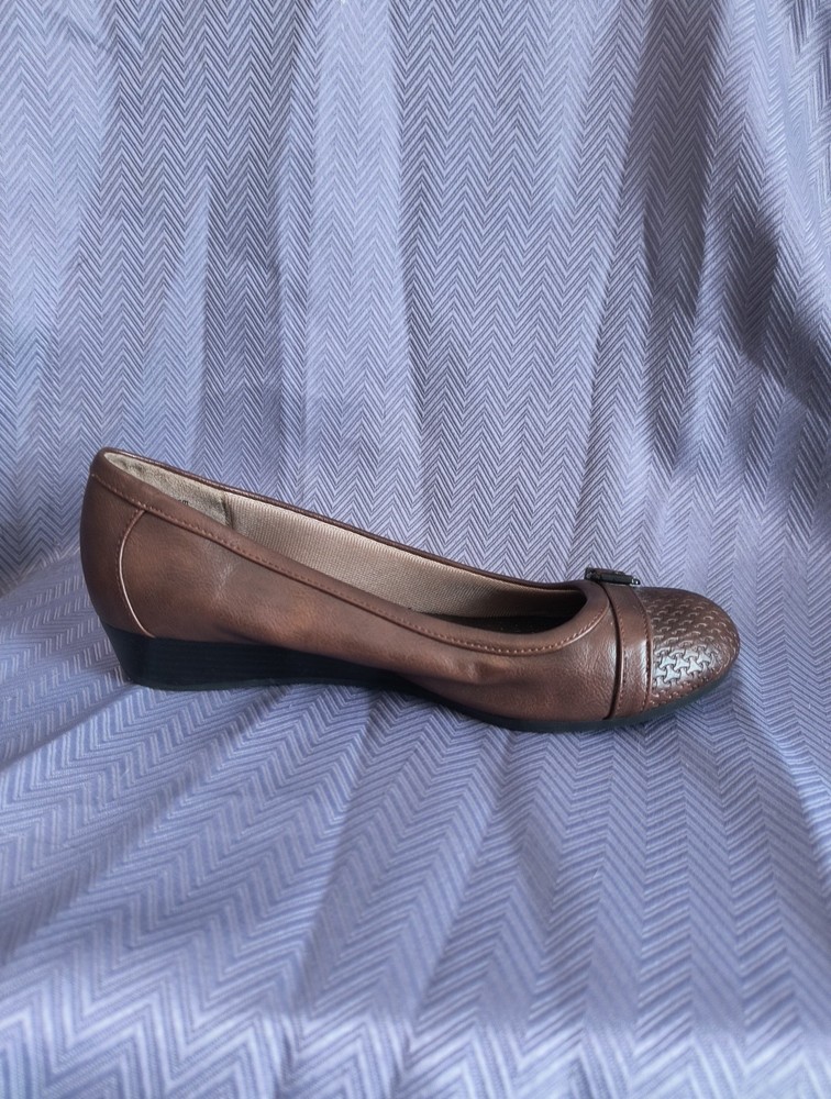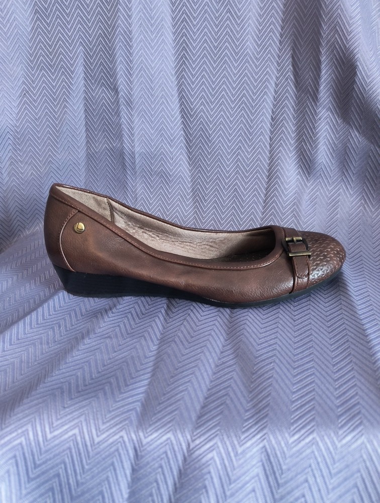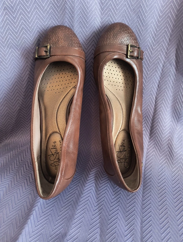 Features: Comfort, Cushioned US Shoe Size: 8 Style: Pump Department: Women Type: Heel Closure: Slip On Pattern: Solid Heel Height: Mid (2-2.9 in) UK Shoe Size: 6 Shoe Width: M EU Shoe Size: 38 Heel Style: Wedge Brand: LifeStride Color: Brown Toe Shape: Almond Toe Upper Material: Faux Leather, Not Specified