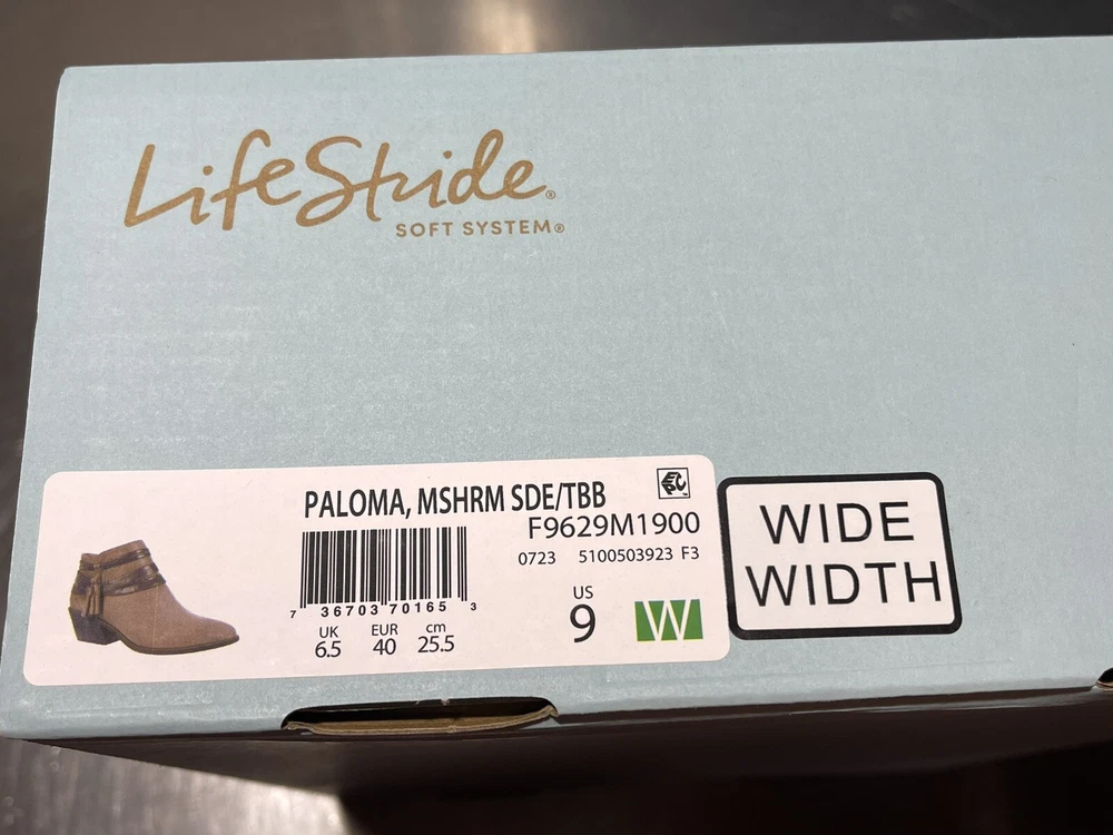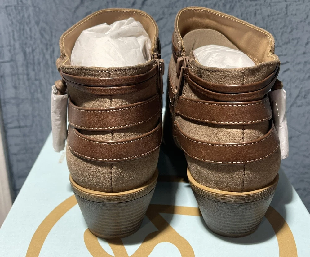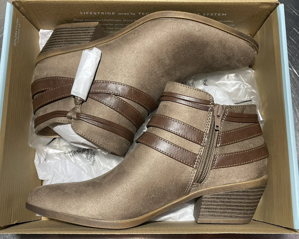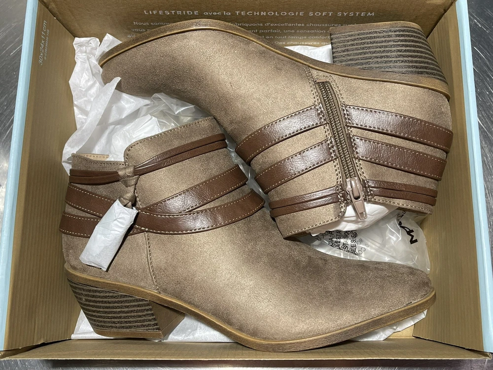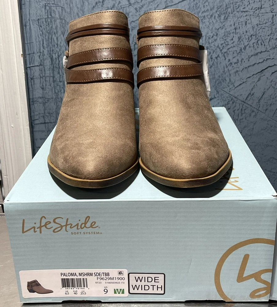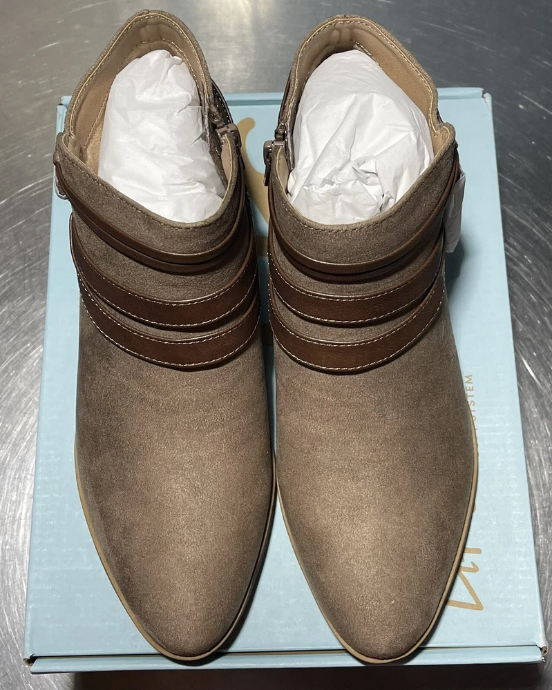 Life Stride Women's US 9 Medium Paloma Mushroom Suede Bootie FLEX well made Man Made upper and sole Side zip Free ship NWOB!