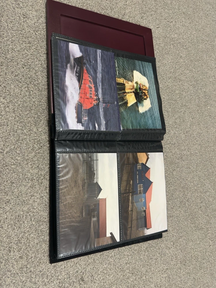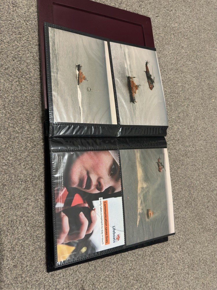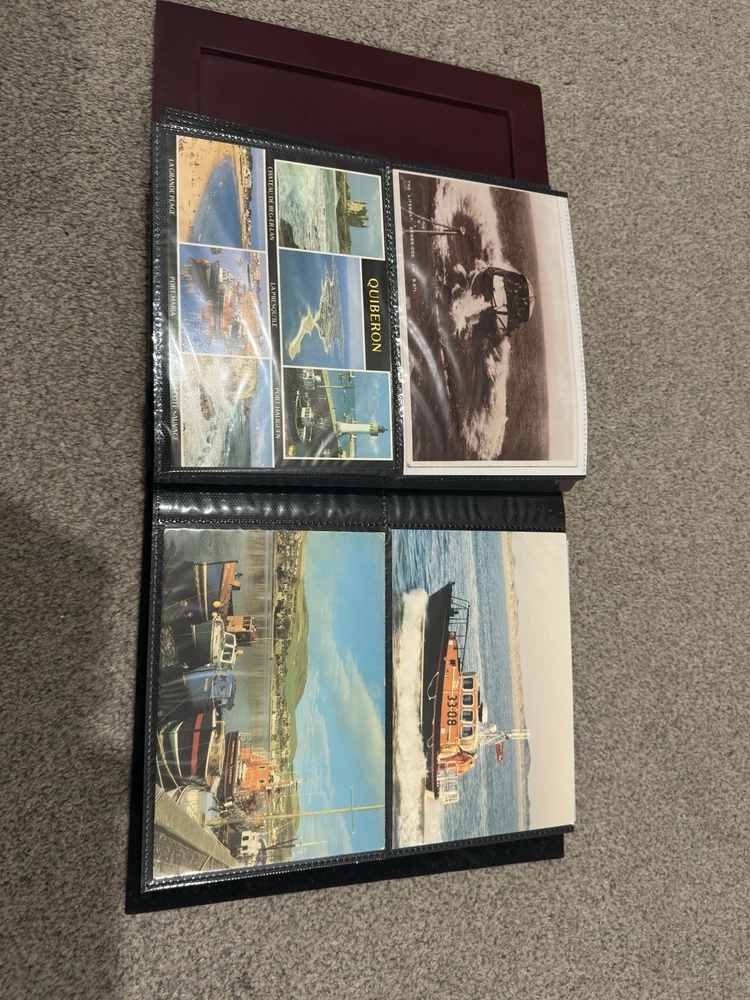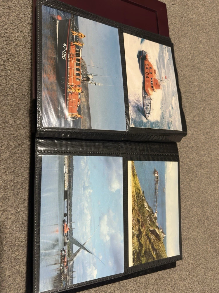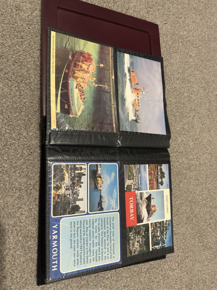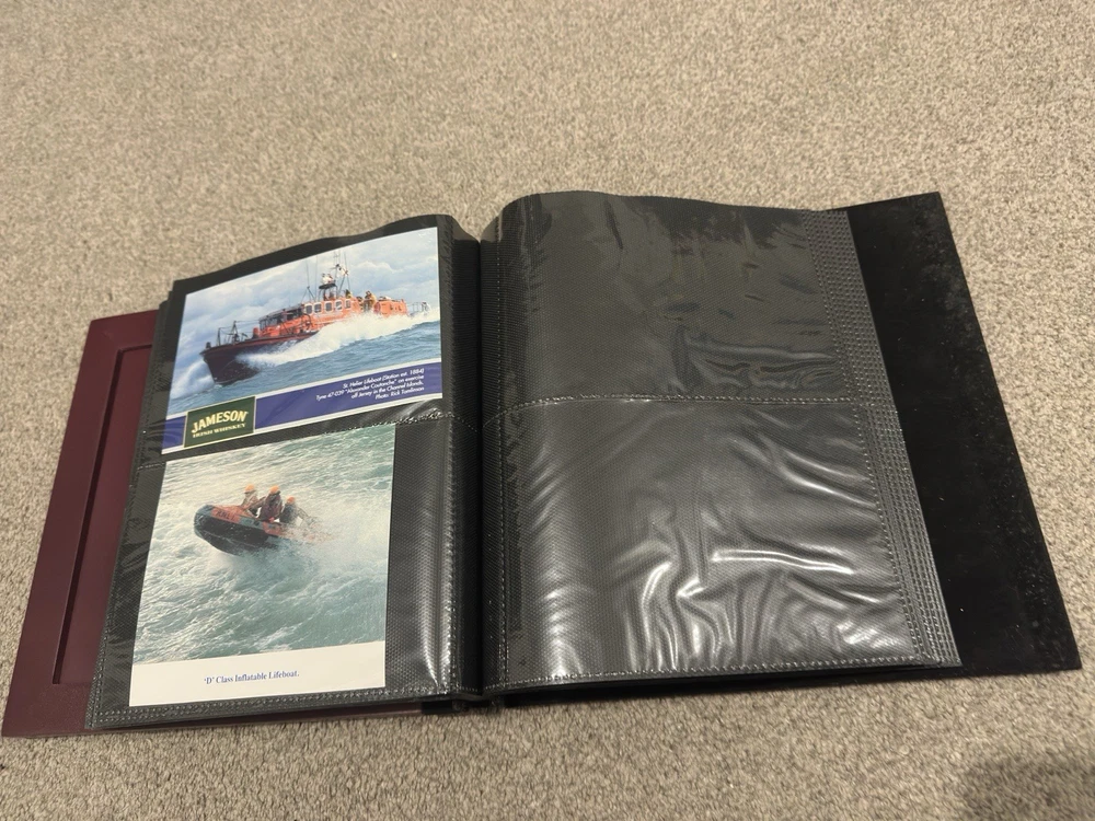 including postcards, photographs and other maritime memorabilia connected with lifeboat and rescue services. The album is not complete and includes 9 empty pages, suggesting the original owner intended to continue building the collection but did not finish it. Items are mounted inside the album and show signs of age and handling, consistent with an older collection. The album itself also shows general age-related wear. A solid mixed lot ideal for lifeboat, maritime or RNLI collectors. Please see photos for full details of condition and contents.