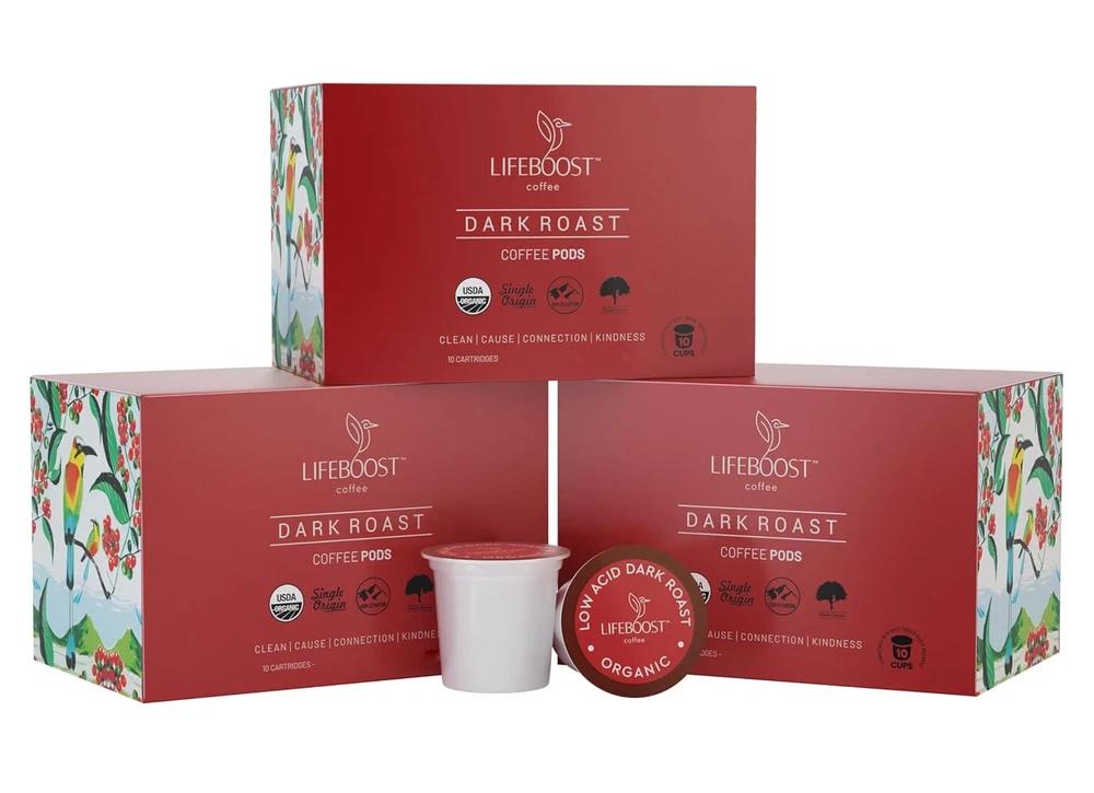 Lifeboost Dark Roast Low Acid Coffee K Cups - Single 10 Count (Pack of 1)