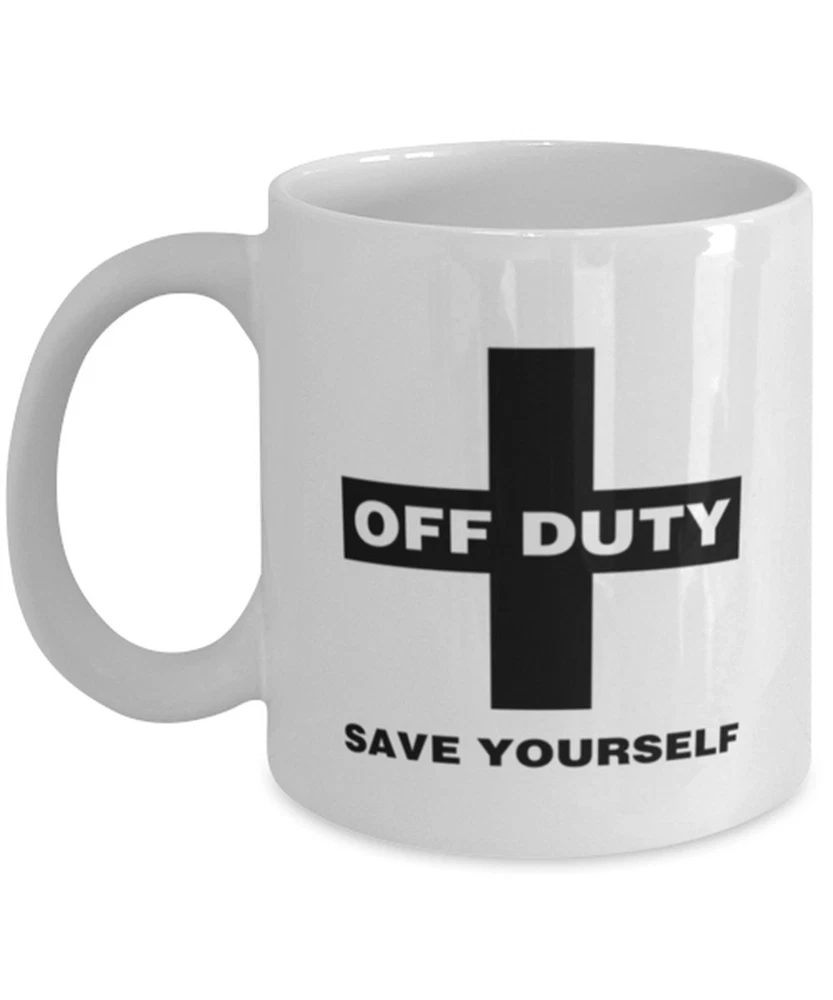 Lifeguard Funny Coffee Mug Off Duty Save Yourself - White Coffee Mug Product Details.. This high quality 11oz. ceramic white mug has a premium hard coat that provides crisp and vibrant color reproduction sure to last for years. Perfect for all hot & cold beverages. The highest quality printing possible is used. It will never fade no matter how many times you wash it. Material: 100% Ceramic. Print both sides. Dishwasher and Microwave Safe. High Gloss + Premium White Finish. Printed in the U.S.A. Personalized & Custom. We support personalized and custom mug to add custom, when placing an order, you can add notes to the "order note" in shipping address section. Also you can contact us directly via message. Shipping Info. Ready to ship in 1 to 2 business days, All products are made-to-order and proudly printed in the United States. Shipped by USPS and DHL, You will receive your order in 5-7 days. Replace & Refund. All products are defective during shipping broken, chipped will be replaced free of charge. You are not satisfied with the product, we will refund 100% money to you. If any other issues arise, please do not hesitate to message, we would be more than happy to assist you.