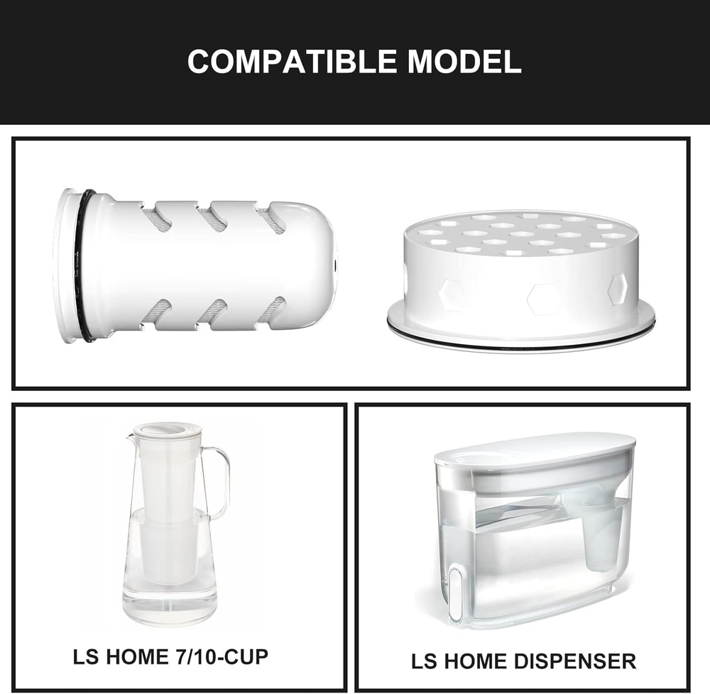๐๐ผ๐บ๐ฝ๐ฎ๐๐ถ๐ฏ๐น๐ฒ ๐ ๐ผ๐ฑ๐ฒ๐น: This Water Pitcher Filter replacement is compatible with LS Home Dispenser 18 Cup/Glass Pitcher 7 Cup/Plastic Pitcher 10 Cup/Plastic Pitcher 7 Cup. ๐ฃ๐ฟ๐ฒ๐บ๐ถ๐๐บ ๐ ๐ฎ๐๐ฒ๐ฟ๐ถ๐ฎ๐น: Water Pitcher Filters are made of food-grade, lead-free, and BPA-free materials. Use 100% selected coconut shell carbon block, which can ensure maximum filtration and cleaner water possible. ๐ช๐ฎ๐๐ฒ๐ฟ ๐๐ถ๐น๐๐ฟ๐ฎ๐๐ถ๐ผ๐ป: Our Dispenser replacement water filter can remove 98.9% chlorine and improve waterโs smell and taste. Bring healthy and safe drinking water to you and your family. ๐๐ผ๐ป๐ด ๐๐ถ๐ณ๐ฒ๐๐ฝ๐ฎ๐ป: Membrane microfilter lasts up to 1, 000 liters (1 year with regular use); activated carbon + ion exchange filter lasts up to 150 liters (2 months with regular use). Package contains (2) membrane microfilter and (2) activated carbon + ion exchange filter ๐ฆ๐ฒ๐ฟ๐๐ถ๐ฐ๐ฒ ๐๐๐ฎ๐ฟ๐ฎ๐ป๐๐ฒ๐ฒ: If you have any questions about Dispenser water filter replacement, please feel free to , we are committed to offering high-quality products and providing efficient customer service. This replacement water filter is compatible with LS Home Dispenser 18 Cup/Glass Pitcher 7 Cup/Plastic Pitcher 10 Cup/Plastic Pitcher 7 Cup. Package contains (2) membrane microfilter and (2) activated carbon + ion exchange filter FEATURES High Filtration Efficiency Food-grade BPA-free LEAD-Free material NOTE: This is not an OEM product. The brand name and logo are registered trademarks of their respective owners. The use of brand names or model names in this product is for the purpose of illustrating compatibility only.