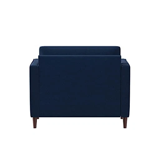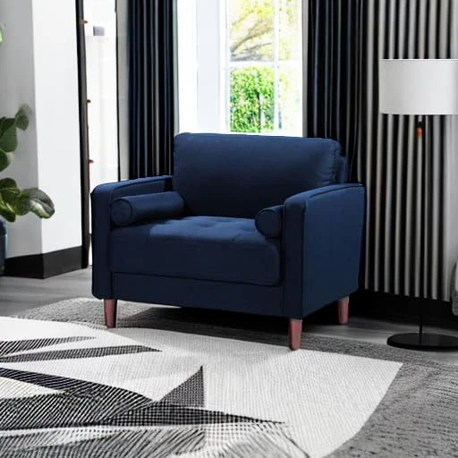 Love this chair! It's both stylish and super comfy, perfect for small spaces. The sturdy hardwood frame and soft tufted cushions make it feel luxurious, while the durable navy fabric stays looking fresh. A great blend of modern design and lasting comfort—highly recommend!