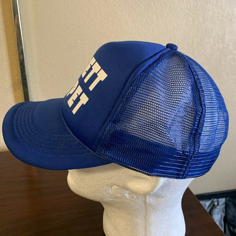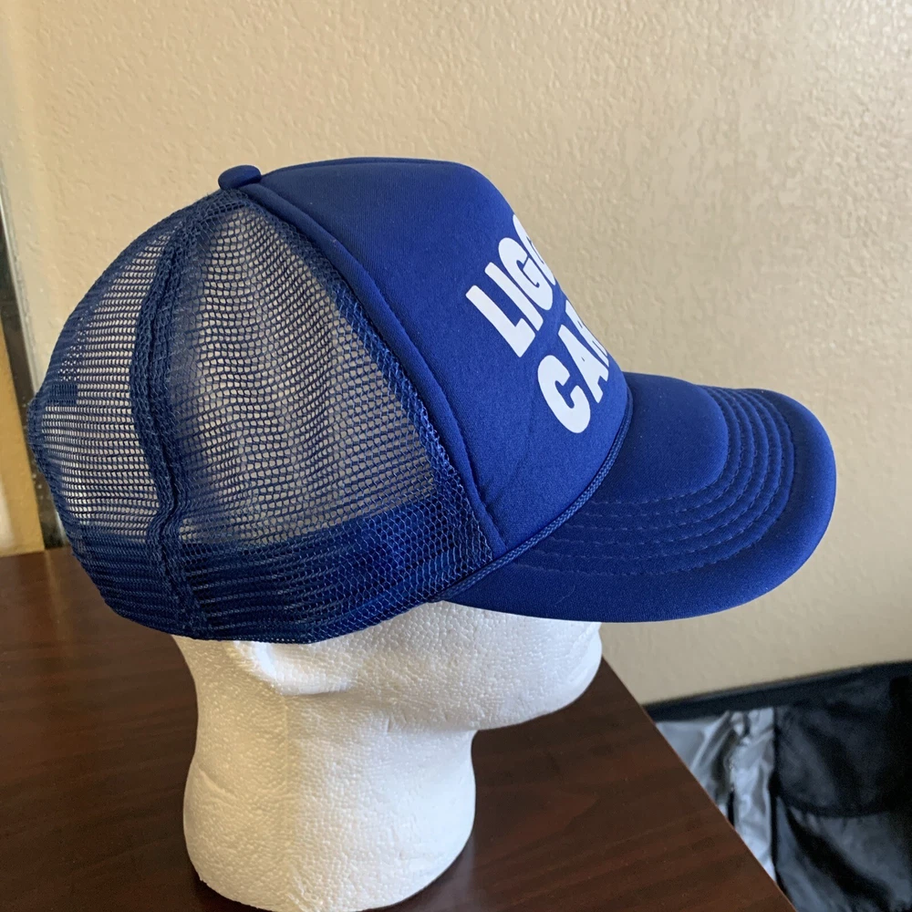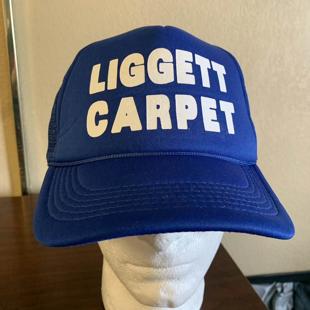 Vintage:NoSeller Notes:“good condition, no issues”Brand:Enzagtin13:does not applyCharacter:LiggettColor:BlueDepartment:MenFabric Type:MicrofiberTheme:80s, carpetPersonalize:NoUPC:does not applySize:One SizeSigned:NoHandmade:NoCountry/Region of Manufacture:ChinaStyle:Trucker HatSeason:Fall, Spring, SummerFeatures:AdjustableMaterial:Cotton, PolyesterOccasion:Casual, Travel, WorkwearPattern:Solid