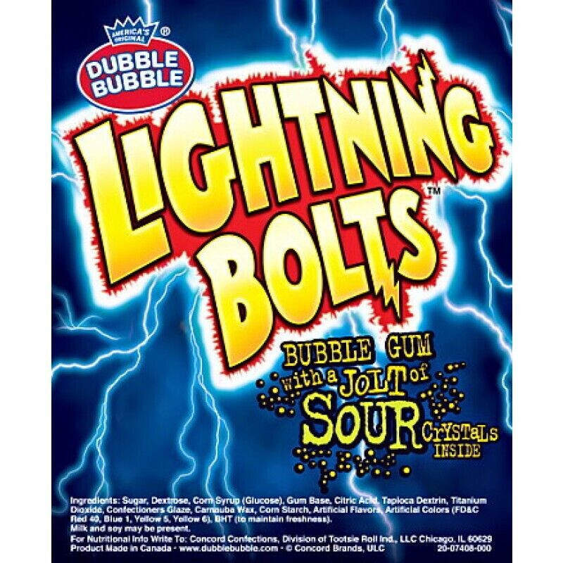 WORLDWIDE FAVORITE GUMBALLS - DUBBLE BUBBLE BRAND LIGHTNING BOLTS SOUR FILLED GUMBALLS - MOST LOVED GUMBALLS Easy to chew and tasty! 3 LBs - Buy more than one and save 20% *Not responsible for customs delays, fees, taxes or issues FREE SHIPPING TO CONTINENTAL 48 STATES - PR, AK & HI require extra shipping Check out our store and become a follower for weekly discounts & coupons