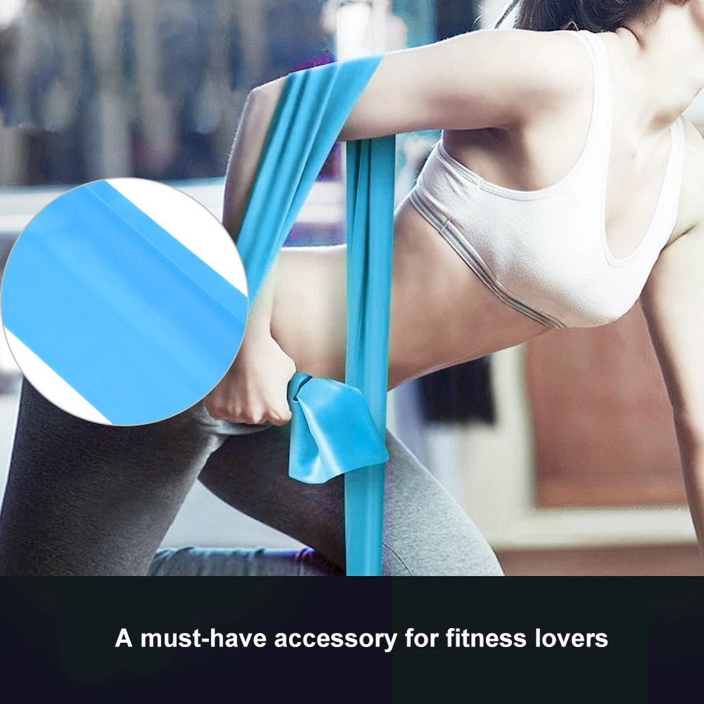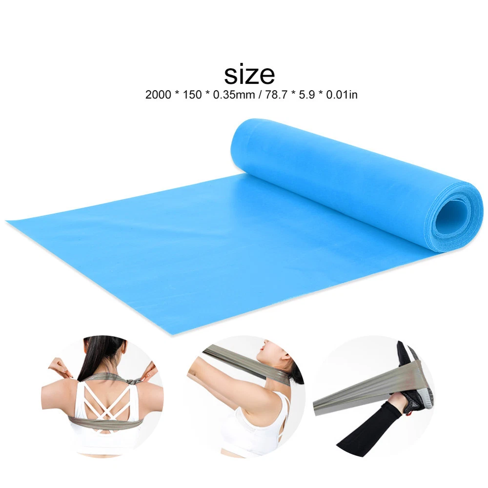 Light Blue 2m Elastic Yoga Strap Resistance Band for Stretching Fitness and Exercise with FA