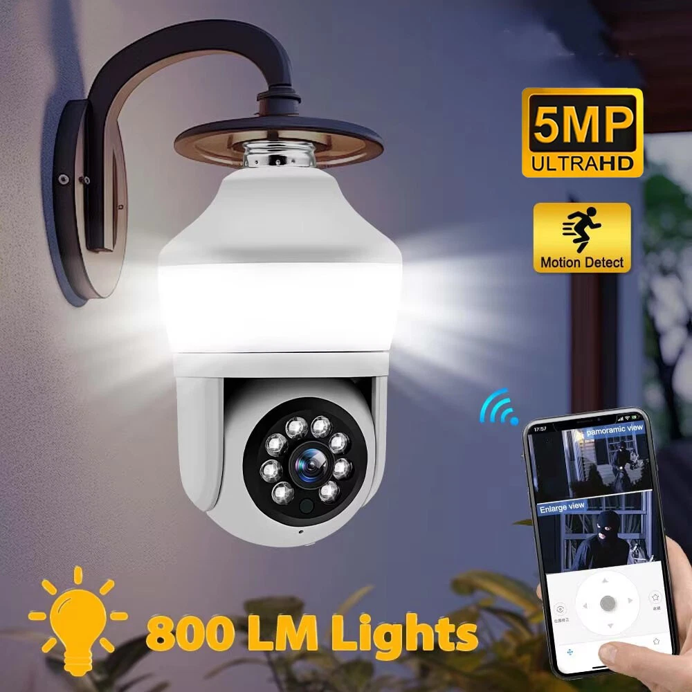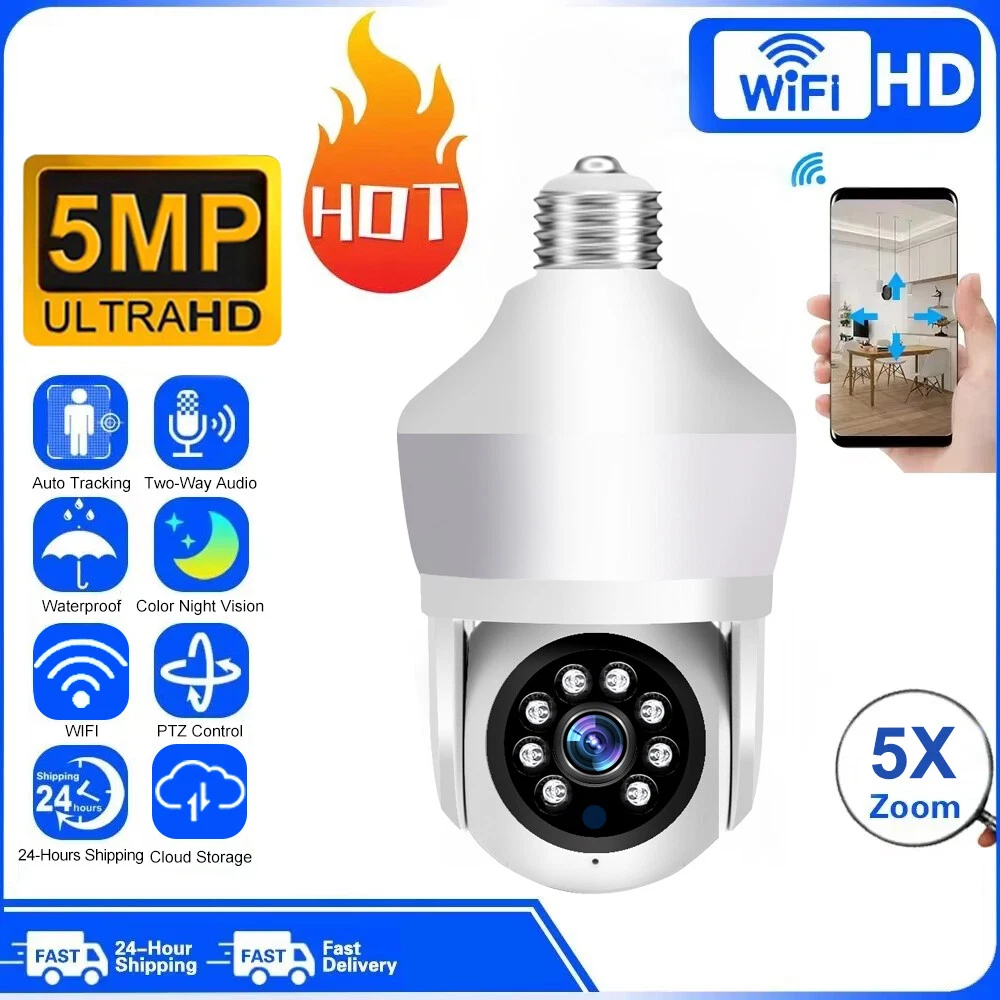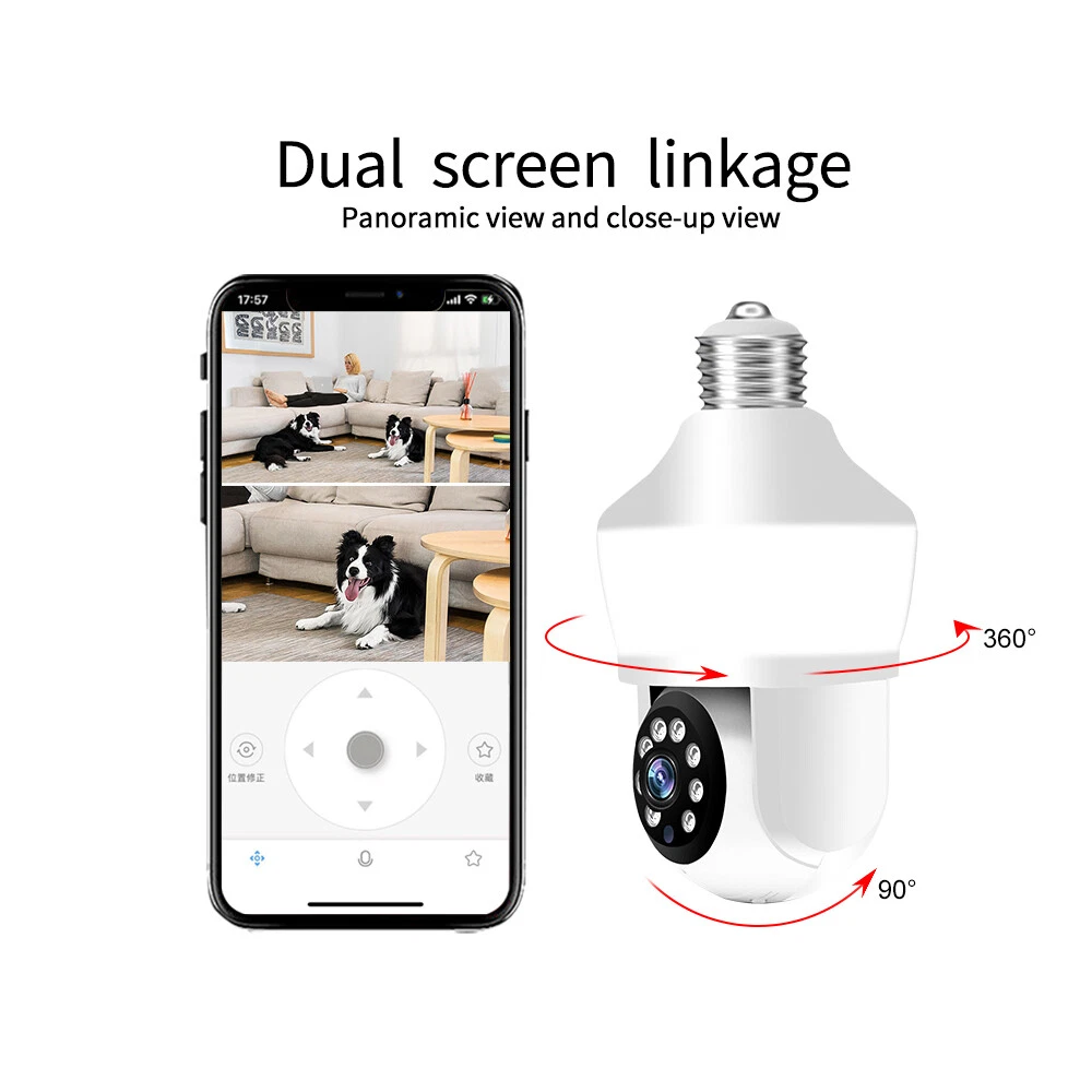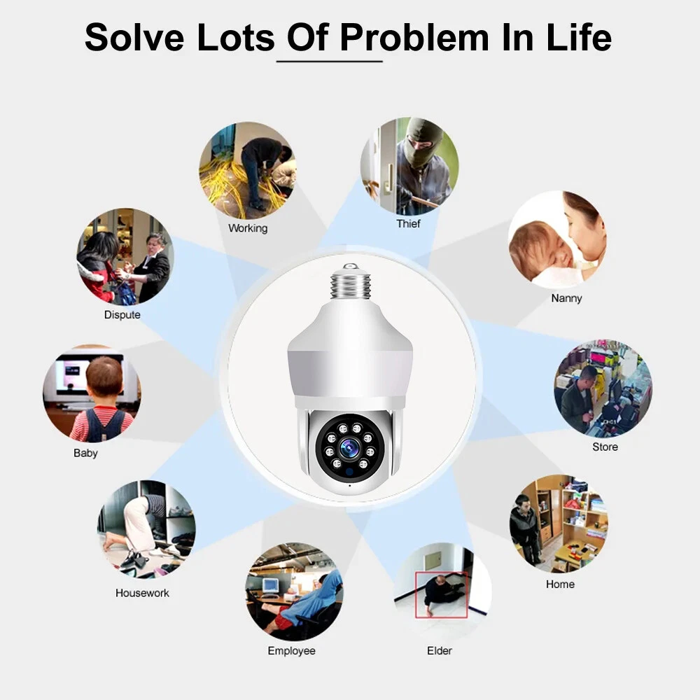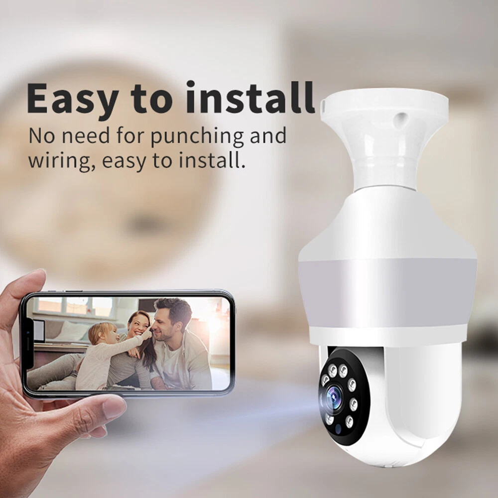 Features: * Remote control: monitor the smart bulb wifi camera anytime and anywhere via APP * LED bulb: the panoramic camera bulb can be turned on or off automatically, manually, and periodically. * HD 5MP: 5 megapixel high quality video clips provide clear and detailed images. * Wifi Connection: light bulb camera supports connection via wifi. (Only support 2.4Ghz router) * Alarm function: when the bulb camera detects someone entering the shooting area in time, it will push an alarm notification to your mobile phone. * Two-way audio: with built-in microphone and speaker, you can talk to others through the camera. * Pan & Tilt: control the rotation to any corner you want to check in APP, protect your home security. * Dual light source night vision: built-in 4 white LEDs and 4 infrared LEDs, you can see clear images even in complete darkness, support full colour night vision. Specification: Product name: WiFi camera Camera type: bulb Lens Pixel: 5MP Video compression: H.265 Camera lens: 3.6mm Waterproof rating: IP66 Sensor: CMOS Recording Mode: All Day and Event Recording Number of light beads: 4 IR + 4 white light. Network support: P2P mode, 2.4Ghz wireless Memory Expansion: 128GB micro SD card (not included) Rotation Angle: 355°(Horizontal)/90°(Vertical) Alarm Trigger: Video push, speaker alarm, alarm recording Applicable places: home, shop, school, supermarket, factory, etc Installation: Embedded Cloud Storage: Subscription required Apps: v380pro Compatible devices: Android/ios Working power supply: 110-240V Base type: E27 Product size: about 155*95mm Product colour: white Product material: ABS Packing list: 1* Light bulb camera (not including TF card) 1* E27 base 1* User manual 1* Screw kit Attention: 1. TF card in the photo is not included! 2. Colour may vary according to the light! 3. Please allow a slight 1-2cm difference due to manual measurement! 4. Thank you for your understanding and attention, wish you have a pleasant shopping experience! On Nov 18, 2024 at 04:35:43 PST, seller added the following information: