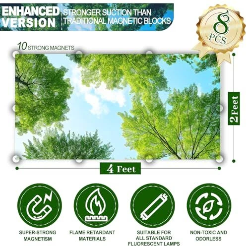 Light Covers, 8 Pcs 4 x 2 FT Fluorescent Light 8 Pack Forest Style 8Pcs