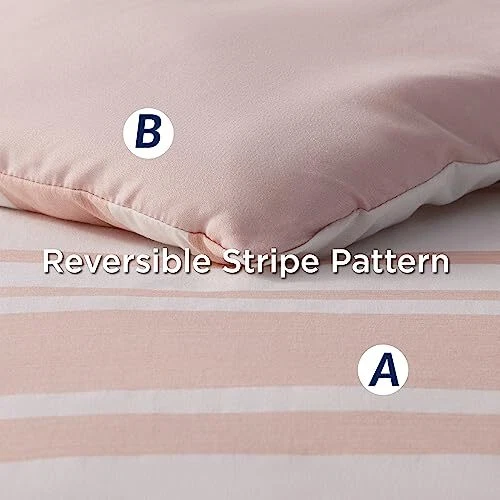 Return Policy Fast Delivery Trusted seller Light Pink Comforter Set Queen 7 Pieces, Light Pink White Striped Bedding Sets All Season Bed in a Bag, 2 Pillow Shams, Flat Sheet, Fitted Sheet and 2 Pillowcases Product Description OEKO-TEX Certified: This queen size bedding set is Standard 100 by OEKO-TEX certified for meeting high safety standards and is free from harmful materials, providing sleepers with assured quality. Easy Care: The double stripe queen comforter set is easy to clean. Simply machine wash cold without chlorine based bleach and tumble dry low to make it fresh and new again. High-Quality Fill: Our all-season bedding set is filled with a fluffy 240 GSM fiber fill that is extra airy and fluffy, providing a cloud-like sleeping experience to cozy sleepers. Elegant Design: The stripe pattern on this bed-in-a-bag set conveys a modern minimalist appeal that coordinates with various home decor styles, adding more aesthetic and coziness to your bedroom. What You Get: The Bed in a bag queen size complete set includes 1 Comforter (90" x 90"), 2 Pillowcases (20" x 30"), 2 Pillow Shams (20" x 26"+2"), 1 Fitted Sheet (60" x 80" + 14"), 1 Flat Sheet (90" x 102") Shipping Returns Payment Shipping Shipping is FREE to all addresses other than APO/PO boxes in the lower 48 states. All our stock ships from US-based warehouses. Shipped via USPS or UPS (depending on location and package weight) Unless stated otherwise, all orders will ship within 24-72 hours of your payment being processed. Check our feedback to see the great reviews of FAST shipping we offer. Returns Seller does not accept returns Payment We currently accept payment via eBay managed payments only. Once payment is cleared, we will dispatch your shipment within 1-3 business days. Please refer to the "Shipping" tab for more information regarding shipping speed to your destination.