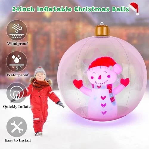 30 Days Return Policy Fast Delivery Trusted seller Light Up Inflatable Christmas Snowman Ball, 24 Inch Large Inflatable Outdoor Decorations Balls, Christmas Xmas Blow Up Ball with 13 Color LED Light for Yard, Lawn, Pool Decorations Product Description 【???????? ?????????】Our inflatable Christmas ball is made of PVC material, tough and practical, it is effective against the elements and can accompany you winter after winter. Innovative dual safety nozzle system design ensures fast and stable inflation experience, easy to use. With IP66 advanced waterproof protection, it will bloom peacefully even on snowy winter nights, adding long-lasting sparkle to your Christmas decorations. 【???????? ????? ??????????】The giant light up Christmas inflatable ball comes with subtle accessories that take holiday decorating to a new level. It can easily display brilliant lights - 13 exquisite gradient dreamy shades, making every moment of light and shadow change an unrepeatable and wonderful moment, awakening every surprise and expectation in winter. 【????????? ??????????】To adapt to various terrains and environments, the 24 inch light up PVC inflatable snowman ball is equipped with 2 strong ground stakes and 2 nylon ropes up to 27.5 inches long, which can be easily secured to dirt, gravel, and lawns. Hanging holes design gives you unlimited creative layout possibilities, you can hang it from tree branches, balconies or ceilings to create a unique landscape suspended in the air. 【?????????? ??? ???】First, open the inflation hole of the blow ups christmas decorations and slowly inflate it to the proper size. Next, unscrew the LED light unit and remove the white insulating piece inside the light. Finally, install the LED lights properly on the bottom of the inflatable Christmas yard decoration ball. 【???? ????? ?? ???????????】Our Christmas inflatable ball is ideal for patio, garden, outdoor tree, lawn, porch, pool, balcony, Christmas party, etc. It is not only the highlight of outdoor decorations, but also can be used as a cozy presents to bring surprises to your family members, friends, neighbors, and co-workers. The vibrant colors and sharp details that bring the magic of Christmas to life, these are going to be great for decorating with come Christmas time. Shipping Returns Payment Shipping Shipping is FREE to all addresses other than APO/PO boxes in the lower 48 states. All our stock ships from US-based warehouses. Shipped via USPS or UPS (depending on location and package weight) Unless stated otherwise, all orders will ship within 24-72 hours of your payment being processed. Check our feedback to see the great reviews of FAST shipping we offer. Returns As our valued customer, we will do our best to make sure the product you receive arrives to you on time and as expected. If you are not satisfied with your purchase, please contact us within 30 days of receiving your order to process a return. Payment We currently accept payment via eBay managed payments only. Once payment is cleared, we will dispatch your shipment within 1-3 business days. Please refer to the "Shipping" tab for more information regarding shipping speed to your destination.