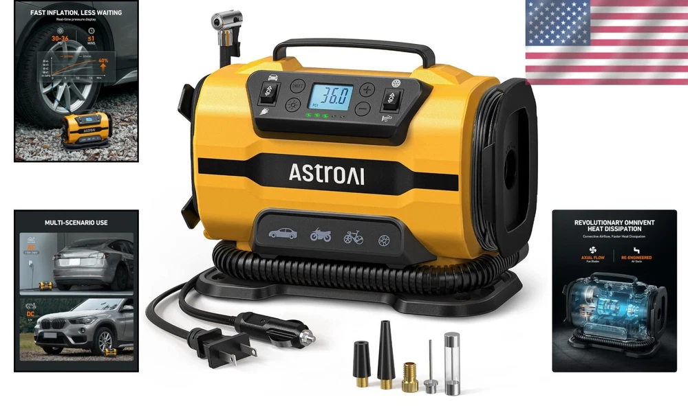 Light Yellow Powerful Tire Inflator with OmniVent Technology & Compact Design ‹ › ‹ › ‹ › ‹ › ‹ › ‹ › ‹ › ‹ › ‹ › ‹ › Light Yellow Powerful Tire Inflator with OmniVent Technology A compact and versatile solution for all your inflation needs. Features: Dual Power Supply: Compatible with 12 V DC car cigarette lighters and 120 V AC household outlets for maximum convenience. High-Pressure & Large-Volume Modes: Easily switch between modes for inflating tires, sports equipment, and larger items like air mattresses. Revolutionary OmniVent Dissipation Technology: Innovative design ensures rapid heat dissipation, enhancing durability and extending the pump's lifespan. Fast Inflation: With dual metal motors, this inflator can work continuously for up to 15 minutes. Inflate a flat tire from 0 to 36 PSI in just 6 minutes. Integrated LED Light: Provides excellent visibility for nighttime use, illuminating your workspace. Easy Operation: LCD screen displays both preset and current tire pressure; automatic shut-off when desired pressure is reached. Convenient & Compact Storage: Includes an air hose compartment for tidy storage of the power cord and attachments. Benefits: Effortless switching between high-pressure and large-volume modes. Quick and efficient inflation significantly reduces downtime. Easy to operate controls and memory functions save you time. Lightweight and portable design ideal for travel, home, and roadside emergencies. Perfect for cars, bikes, sedans, and mid-sized SUVs. Why choose our Tire Inflator? Experience unparalleled convenience with the Light Yellow Powerful Tire Inflator, designed with cutting-edge OmniVent Technology for enhanced performance and longevity. Whether you're at home or on the road, this inflator's dual power capabilities and fast inflation rates ensure you're never caught with flat tires. Plus, its compact design allows for easy storage, making it the perfect addition to your vehicle or home. Elevate your inflation experience today! Make it a thoughtful Christmas gift for those who value efficiency and reliability. Shipping Free & Fast Shipping - We offer free shipping to most of the USA with a normal delivery time of 3-7 days. However, due to the current situation, additional delivery time (up to 3 weeks) may be required for some items. Alternative Carriers - We may use alternative carriers (e.g. USPS, FedEx, UPS, etc.) to ensure your package arrives safely and on time. Due to the use of multiple carriers, we are unable to provide a tracking number automatically. Handling Time - Orders are processed and shipped within 1-2 business days of receiving cleared payment. Shipping Restrictions - Shipping to Alaska, Hawaii, Puerto Rico, Guam, and other US territories may incur shipping charges or delivery restrictions. Please contact us before ordering, or your order can be refunded/cancelled. State Restrictions - There may be restrictions based on your state of purchase. For example, certain items may not be shipped to California due to state regulations. Contact for Tracking Updates - If you require tracking updates or have any concerns about the delivery of your order, please feel free to contact us, and we will be happy to assist you. Return 30-Day Hassle-Free Returns - We want you to be completely satisfied with your purchase. If you are not, you can return the item within 30 days of receiving it for a full refund or exchange. Easy Return Process - To start a return, simply contact us and we will provide you with a prepaid return shipping label and detailed instructions. Restocking Fee - There are no restocking fees for returns. However, the buyer is responsible for return shipping costs if the return is not due to a seller's error. Refund Processing Time - Refunds will be processed within 5 business days of receiving the returned item in its original condition. Payment We accept all major credit cards, PayPal, and Apple Pay for your convenience. Your payment information is secure and encrypted to ensure a safe and seamless transaction. Please complete your payment within 3 days of purchase to avoid any delays in shipping. Feedback Your feedback is extremely important to us. We strive to provide the best products and customer service possible. If you are satisfied with your purchase, please take a moment to leave us a positive review. If you have any concerns or issues with your order, please contact us before leaving negative feedback. We are committed to resolving any problems and ensuring your satisfaction. Contact Us If you have any questions or concerns, please feel free to reach out to our customer support team. You can contact us through the eBay messaging system. We are available Monday to Friday, 9:00 am to 5:00 pm EST, and we will do our best to respond to your inquiry within 24 hours. Thank you for supporting our small family business! UPC: Not Set Model: Portable Air Compressor Item Width: Portable Air Compressor Item Length: Portable Air Compressor Item Height: Portable Air Compressor Item Diameter: 11.8 in x 10.2 in x 6.3 in Item Weight: 1.96 kg Unit Quantity: 1 Set Includes: Pressure Gauge,tire inflator,AC/DC power cord,2*air nozzles,1*needle valve adapter,1*replacement fuse,1*Presta to Schrader adapter,user manual Brand: Unbranded Type: Piston Compressor Portability: Portable Voltage: 110 V Power Source: Corded Electric Maximum Working Pressure: 150 Psi Tank Capacity: 0 gal Lubrication Type: Oil-Free Horse Power: 0.8 hp Tank Material: Metal Flow Rate: 350 L/min MPN: Not Set Color: Yellow Country/Region of Manufacture: Not Set Manufacturer Warranty: Not Set Unit Type: Not Set