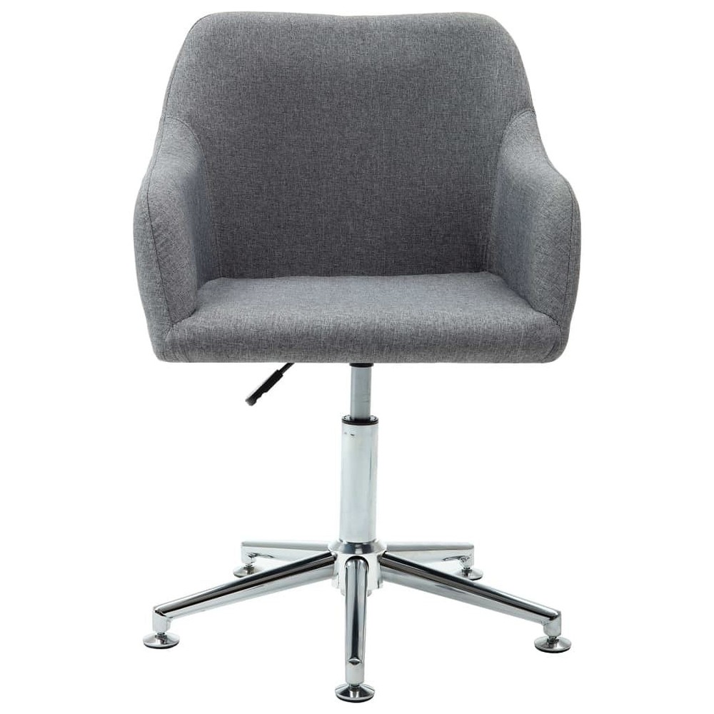 Size: Adjustable This light grey swivel dining chair is both stylish and practical, making it a top pick for dining and office spaces. With its soft polyester fabric and modern look, it not only dresses up a room but also offers comfy seating for meals or desk work. Ergonomic Comfort: The ergonomic design of this dining chair keeps you comfy, even for long stretches, making it spot on for eating or working. The plush armrests support you while you eat or work at your computer. Height Adjustability: With a height-adjustable feature, this chair can be set to your ideal height, letting you switch from dining to working in no time. It suits different heights and preferences. Swivel Feature: The 360-degree swivel lets you move around easily, making it simple to chat with friends at the table or grab things from your desk without getting up. Modern Aesthetic: The sleek, modern design and light grey color make this chair fit right into any room. The polished chrome legs and matte finish add a classy touch, making it a standout piece. Sturdy Construction: Built with a strong steel frame and durable materials, this chair holds up to 242.5 lbs, providing you reliable seating. Its solid legs and quality materials ensure it lasts for a long time. Color: Light Grey Shape: Other Material: Polyester Fabric Finish: Matte Indoor/Outdoor: Indoor Only Cover Included: No Room: Living Room Maximum Number of People: 1 Maximum Weit: 242.5 lbs Dimensions: 20.9 x 21.7 x 36.2 in (W x L x H) Min-Max Dimensions: 42/56 Weight: 15.43 lbs Seat Depth: 15.7 in Seating Capacity: 1 Swings: No Delivery Contains: 1 dining chair Assembly Required: Yes Recommended Number of People for Assembly: 2