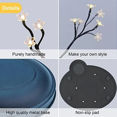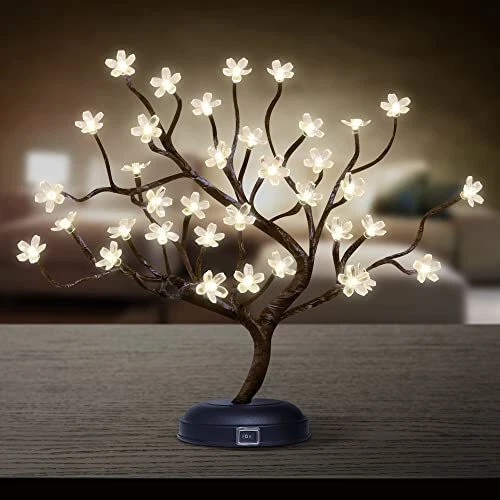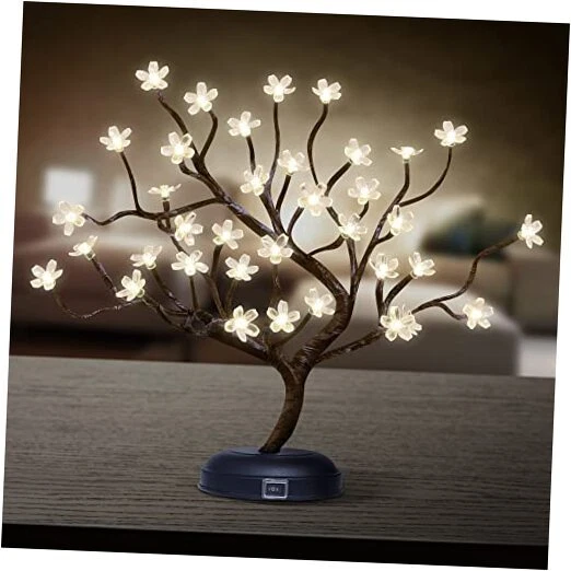 Return Policy Fast Delivery Trusted seller Lighted Cherry Blossom Tree Lamp 18IN Tree Lights with 36 LED, Japanese Cherry Blossom Decor for Indoor and Outdoor, Adapter Plug in/ Battery Powered Tabletop Lamp, UL Listed, Warm White Product Description 【Unique Cherry Blossom Decoration】 This 18-inch tree lamp has 36 clear cherry blossom petals that are just the right amount of brightness to lit up your entire room without being too dazzling or dim. With the hand-wound brown branches, it brings you a romantic and elegant atmosp at night. 【Adjustable Branches to Meet Your DIY Needs】 As the branches are made of soft copper wires, you can bend it into any shape you like, in different holidays with different festival accents, to create your own decorative style. 【Plug-in & Battery Powered】 This lamp can be powered by 4AA battery and 6V adapter at the same time, which both gives it a long life that far exceeds the other average lamps and also provides portability. It can serve as temporary lighting for outdoor weddings, dinners, parties, gardens, whenever you need it. 【One- Timer and Waterproof Design】 This tabletop lamp has an advanced craft, frosted metal base, fully waterproof design, non-slip foot sticker, and just need one- to switch timer function (6 hours on 18 hours off automatically). 【Quality Assurance】 All of our LED tree lights come with a 180-day warranty. And We have the best customer service and quality control team to cover your back. If you have any questions, please feel free to contact us, we will solve your issues within 24 hours. Shipping Returns Payment Shipping Shipping is FREE to all addresses other than APO/PO boxes in the lower 48 states. All our stock ships from US-based warehouses. Shipped via USPS or UPS (depending on location and package weight) Unless stated otherwise, all orders will ship within 24-72 hours of your payment being processed. Check our feedback to see the great reviews of FAST shipping we offer. Returns Seller does not accept returns Payment We currently accept payment via eBay managed payments only. Once payment is cleared, we will dispatch your shipment within 1-3 business days. Please refer to the "Shipping" tab for more information regarding shipping speed to your destination.