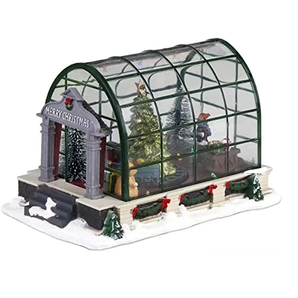 Lighted Christmas Village Greenhouse,animated Holiday Xmas Collectible Building