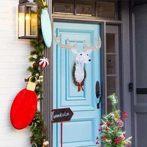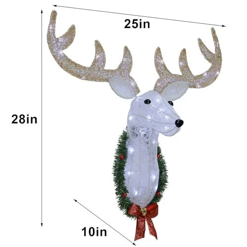 30 Days Return Policy Fast Delivery Trusted seller Lighted Christmas Wall Decor Reindeer Head, 28" Pre-Lit 3D Rudolph Hanging Wreath with Battery Operated, 8 Modes & Timer, Light Up for Front Door Window Indoor Outdoor Festive Xmas Holiday Product Description Christmas Garden Decorations: Decorate your garden with our lighted 3D Rudolph head with wreath wall hanging decor in the coming up Christmas. vivid posture make the reindeer looks more attractive and lovely, build-in 35 LED white lights, create a glowing nighttime display, bringing you and your guests into a warm Christmas world, and suitable for multiple use for indoor outdoor decorations. Size- 25" L x 10" W x 28" H 8 Lighting Modes & Timer Function: The light has 8 lighting modes for you to choose - Combination, In waves, Sequential, Slow Glow, Chg/Flash, Slow fade, Twinkle/Flash, Steady on. Comes with built-in auto timer function(6 hours On and 18 hours Off). If you turning on the light (any lighting mode) at 6 p.m. in the evening, and it will turn off at 12 a.m. at midnight, then auto on at 6 p.m. in the evening, this cycle repeats itself and infinitum, no need to reset it everyday High Quality: The lighted eye catching holiday decorations is made of high quality metal frame and covered in tinsel fabrics, which is very strong and long lasting, can withstand all types of weather conditions. Brighten up your Christmas decor by creating an attractive focal point in your mantel, wall, window or front door Easy to Assemble: This adorable Christmas wall decor requires a simple installation as the picture shown, three-Dimensional design of Christmas mantel deer head makes for easy to set up. Comes with 2 sticky hooks, 2 keyhole brackets on the back of the Christmas wall mounting shield makes it easy to hang up your lighted deer head. 6 plastic cable ties for more stable Great Christmas Gift: Decorate our lighted 3D metal reindeer hanging wreath to anyw you can place, you will be fast on your way to hosting a wonderful Xmas celebration! Each is unique art for making them great for any outdoor space such as lawn, front porch, yard, garden. Adding a whimsical touch to Christmas indoor and outdoor decorations Shipping Returns Payment Shipping Shipping is FREE to all addresses other than APO/PO boxes in the lower 48 states. All our stock ships from US-based warehouses. Shipped via USPS or UPS (depending on location and package weight) Unless stated otherwise, all orders will ship within 24-72 hours of your payment being processed. Check our feedback to see the great reviews of FAST shipping we offer. Returns As our valued customer, we will do our best to make sure the product you receive arrives to you on time and as expected. If you are not satisfied with your purchase, please contact us within 30 days of receiving your order to process a return. Payment We currently accept payment via eBay managed payments only. Once payment is cleared, we will dispatch your shipment within 1-3 business days. Please refer to the "Shipping" tab for more information regarding shipping speed to your destination.