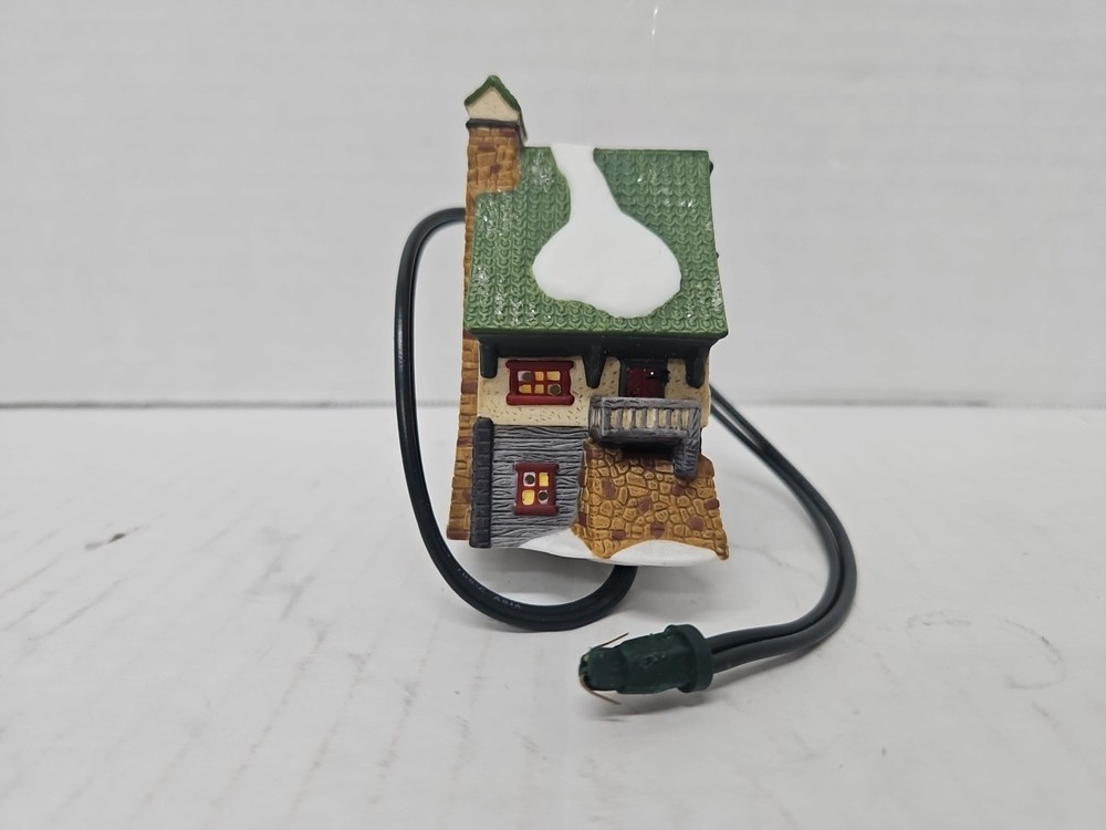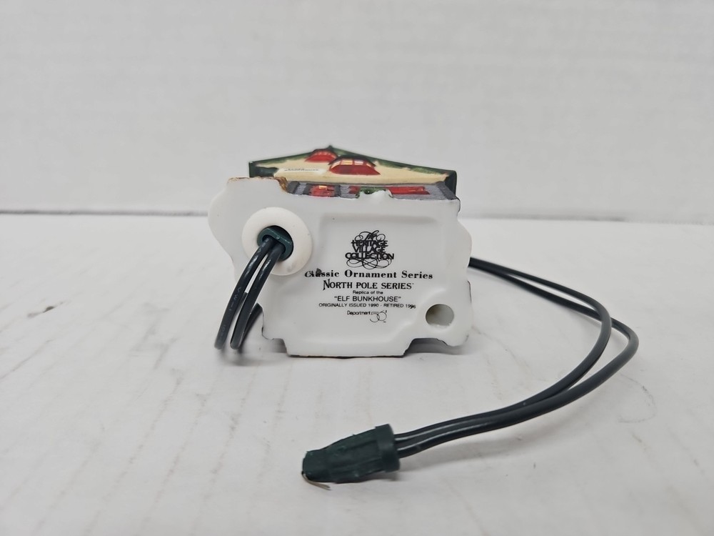 This is a Department 56 Heritage Christmas Village figurine titled "Lighted Elf Bunkhouse 98763" from the Heritage Village collection. It features a festive Christmas theme and is designed for adults. This figurine is part of the Dept. 56 Heritage Christmas Village series and was manufactured in 1990. Perfect for creating a charming holiday display with a village setting.No box