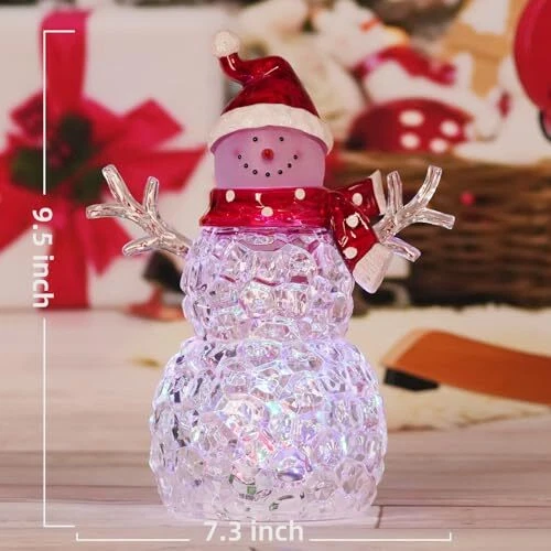 30 Days Return Policy Fast Delivery Trusted seller Lighted Snowman Figurines 9" Christmas Snowman Decorations Battery Operated Acrylic Snowman Lantern Holiday Home Decor Indoor, with Santa Hat, Scarf Product Description Snowman Christmas Decorations: The light up snowman indoor wearing a red santa hat and wrapped in a red polka dot scarf. Cute snowman statue is a perfect addition to your home holiday decorating, it will provide a joyous and festive atmosp. Material: This snowman figurines is made of clear acrylic. Simply switch on the LED lights using the button at the bottom. Night Light: The led snowman is 9 in tall. The led snowman decor can be placed on the mantel, nightstand, desktop or side table along with other festive accents to decorate your space every holiday season. Battery Operated: The snowman light requires 3 AAA 1.5V batteries(not included). Great collectible decor for Living room, Bedroom, office decoration. Holiday Gifts: The christmas home decorations is a great gift to give to any family member, friend, colleagues or neighbor for the winter season. Shipping Returns Payment Shipping Shipping is FREE to all addresses other than APO/PO boxes in the lower 48 states. All our stock ships from US-based warehouses. Shipped via USPS or UPS (depending on location and package weight) Unless stated otherwise, all orders will ship within 24-72 hours of your payment being processed. Check our feedback to see the great reviews of FAST shipping we offer. Returns As our valued customer, we will do our best to make sure the product you receive arrives to you on time and as expected. If you are not satisfied with your purchase, please contact us within 30 days of receiving your order to process a return. Payment We currently accept payment via eBay managed payments only. Once payment is cleared, we will dispatch your shipment within 1-3 business days. Please refer to the "Shipping" tab for more information regarding shipping speed to your destination.