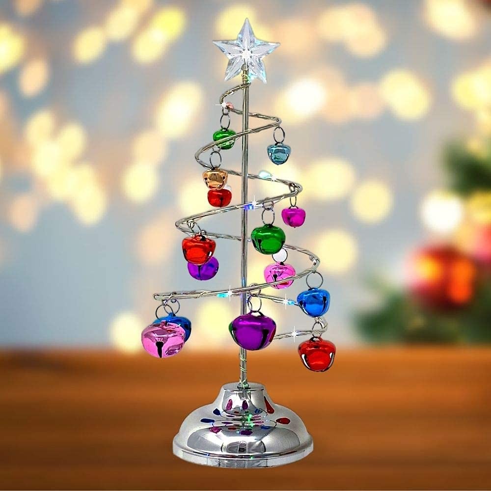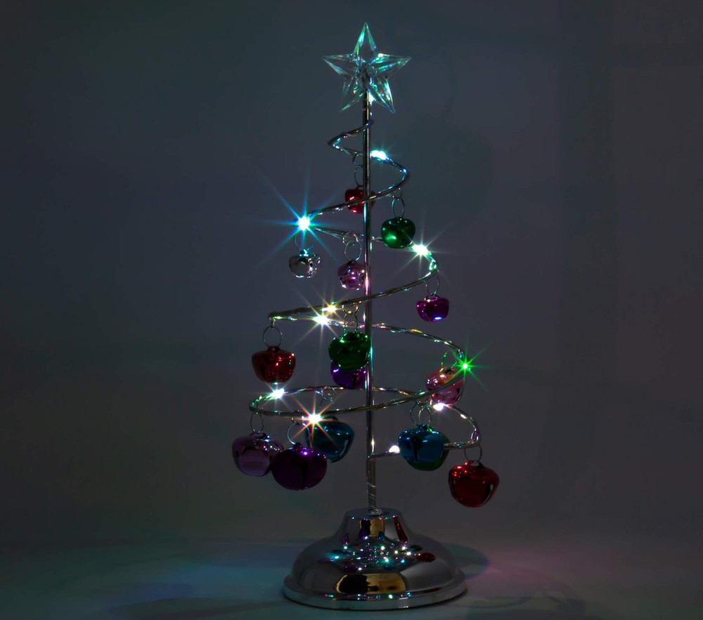 Light up, silver spiral wire tree with clear star on top. This cute tree is decorated with brightly colored jingle bells and a shiny silver base, approximately 4" W. Christmas tree with LED color changing rice lights wrapped around the tree. Measures approximately 10.25" H . Batteries required 3 AAA (NOT INCLUDED). This would make a great gift for anyone. Or add this to your home's holiday display or a perfect size for an office desktop décor. Get a few trees and add them to your mantle for a colorful holiday design. Planning a Christmas wedding or festive party these would be perfect on your tables! Light up Tree for holiday displays, desktops, office parties, Christmas centerpieces - LED lights strung around silver spiral wire tree. Approximately 10.25" H Christmas Figures lighted spiral tree for Christmas set up, holiday craft projects or Xmas centerpiece. Cute bright colored jingle bell tree with led rice lights wrapped around the wire tree. 3 AAA batteries required (NOT INCLUDED). Office Decoration or tabletop village display. Vivid color-changing lights will really illuminate your display. Accessories for Holiday - add them to your Christmas centerpieces or to the mantle for a colorful display. is a registered brand protected by Trademark and is distributed by Relevant Gifts.
