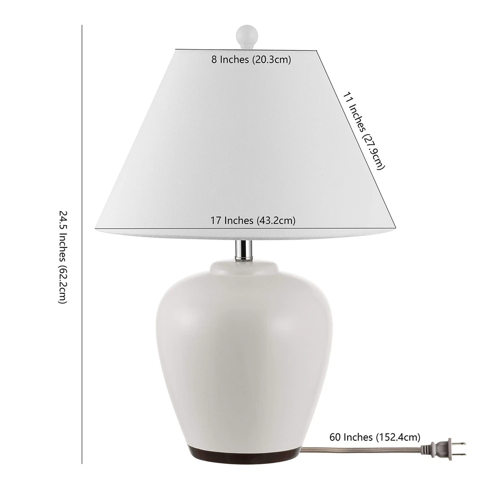 Clean and contemporary, this Etren Table Lamp is sophisticated in its dignified modesty. Etren’s classically styled ivory ceramic is given a touch of visual intrigue with an antique brown base, perfectly finished with a crisp empire shade. [Perfect for any Room]: This table lamp is a stunning addition to any room: the bedroom, entryway, living room, dorm room, or home office; Place on a console table, bookshelf, nightstand, desk, or accent table; Use in pairs for a stylish symmetrical look [Stylish Design]: Features classically styled ivory ceramic with an antique brown base and a crisp empire shade; On/Off rotary switch [Efficient LED Bulb Included]: Conveniently includes LED bulb with a 25,000 hour lifespan and uses 90% less energy than regular bulbs; lamps are ETL listed and UL Certified [Full Dimensions]: 17" wide x 17" deep x 24.5" high [Trusted Brand]: has been a trusted brand in home furnishings for over 100 years, providing quality craftsmanship and unmatched style; Begin your rug, furniture, and lighting search with and explore over 100,000 products today