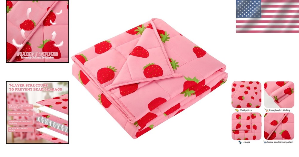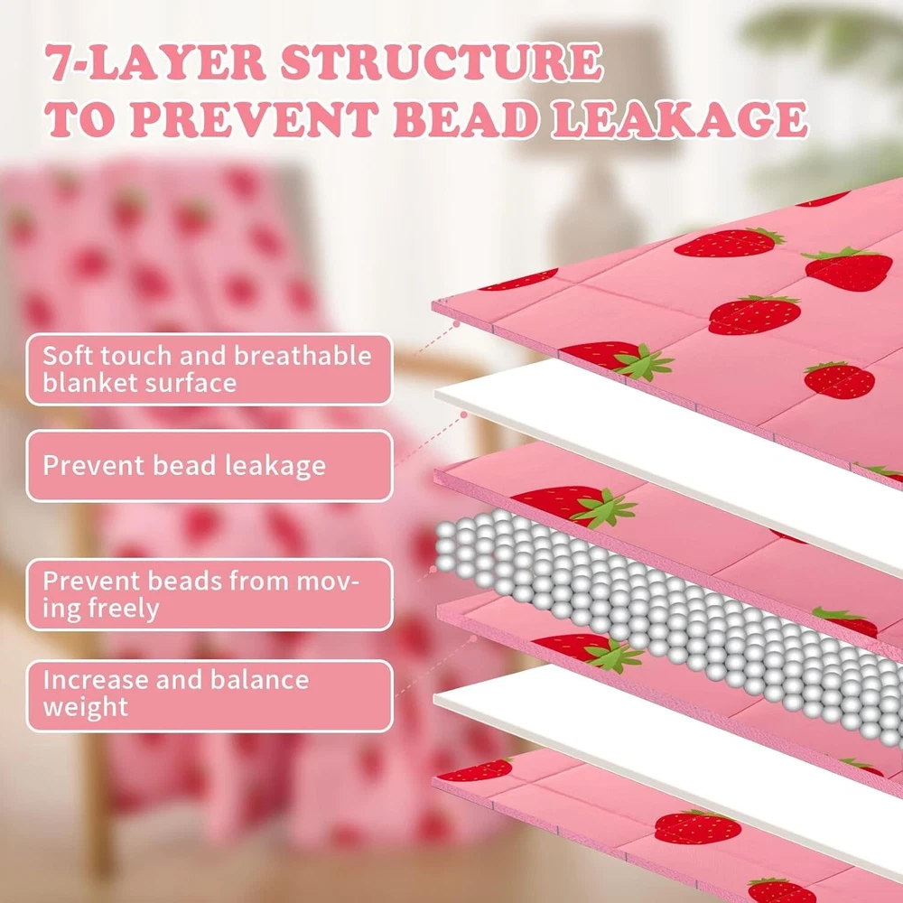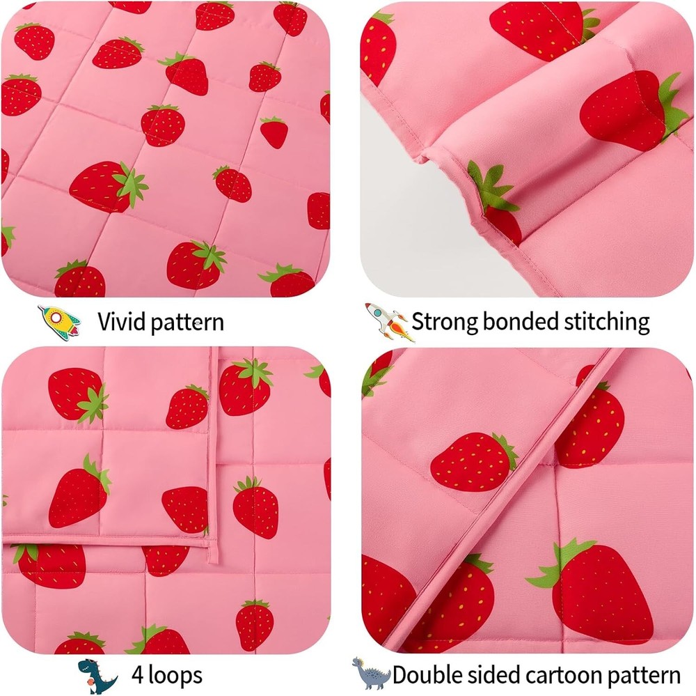 This weighted blanket is a dream! The 10 lbs weight is perfect for relaxation, and the ultra-soft polyester feels cozy without overheating. The adorable strawberry design adds a fun touch, while the sturdy stitching keeps the beads evenly distributed. Love the corner loops for easy attachment—great quality and super cute!