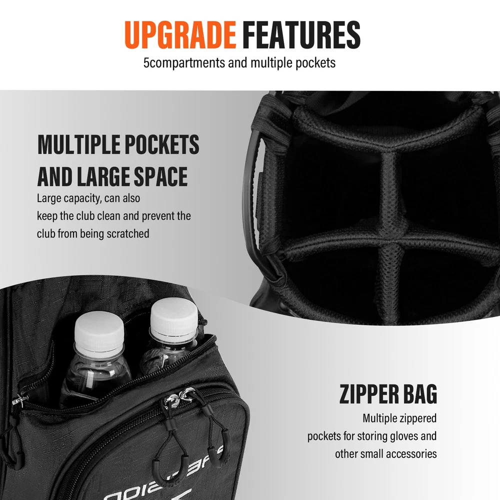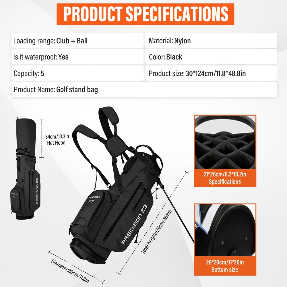 Golf Stand Bag 14 Way Lightweight Golf Club Bags w/ Full-Length Dividers & Stand Bullet Points: Easily Adjustable Straps: This ergonomically designed golf stand bag is equipped with 360-degree rotating discs and self-adjusting dual shoulder straps for maximum mobility, while the four-way self-adjustment removable strap allows for quick customized fits. Efficient Storage: Keep your golf must-haves organized and easily accessible with the golf stand bag, featuring large side pockets, a lined valuables pocket, and a front magnetic pocket. Functional Golf Bag: Boasting a towel loop and cart loop, this golf stand bag comes with a strap sticker attachment, umbrella stand, and rain cover for superb gear protection. Stay organized while enduring wear and tear on the greens. Non-slip Kickstand Legs: Your golfing experience has just gotten better with this stand bag. The sturdy round base stands securely on level ground while protecting your clubs on different terrains. Quick-release and non-slip kickstand legs with straps provide additional balance and comfort. Convenient to Carry: Experience ease of movement on the course with this golf stand bag, which also comes with an extra crossbody strap made of sturdy polyester fabric and PU leather, providing lightweight comfort and long-term use. Experience comfortable carrying with this ergonomically designed golf club bag made of fine polyester fabric and PU leather. Stay organized on the course with Multiple Pockets and Large Space for all your must-haves. Its sturdy round base stands securely on level ground, protecting the club. Comes with an umbrella stand and rain cover to keep you prepared on wet days. Get ready to elevate your game with this Golf Club Bag. Product attributes Loading range: clubs + balls Material: Nylon Is it waterproof: yes Applicable scenarios: indoor/outdoor golf courses Colour: Black Types of sports bags: professional sports bags Packing List: 1* Golf Travel Bags We accept PayPal payment,PayPal Credit,Credit card or debit card and so on. Payment should be completed within 4 (Four) days of auction closing. Or unpaid dispute will be filed for closing auction. We will leave a positive feedback immediately after payment is received. We appreciate a positive feedback as much as you do. If for some reason there is any issue with the purchase, please contact us prior to leaving feedback, we will be glad to work together and provide a satisfying solution. 1. We ship to your eBay address. Each package will be shipped via FedEx or UPS 2-8 business days with tracking number 2. Please check your shipping address carefully before checkout, it can't be changed if order completed. 3. Shipping within 1 business days once payment completed. Orders placed on weekend will be delay 1-2 days. 4. Please allow 6 business days for delivery to any destinations. 5. As a buyer, it is your duty to pay the tax when you make an order from abroad. Our price does not include taxes, VAT, or other hidden charges. 1. We maintain high standards of excellence FIVE STAR and strive for 100% customer satisfaction! 2. Positive Feedback is very important to us. We hope that you contact us immediately BEFORE you give us neutral or negative feedback, so that we can satisfactorily address your concerns. 3. We promise to offer the best price and high quality products. 1. If you have any questions, please send a ebay message. 2. We will reply within 48 hours of your email. Weekend will be delayed a bit.