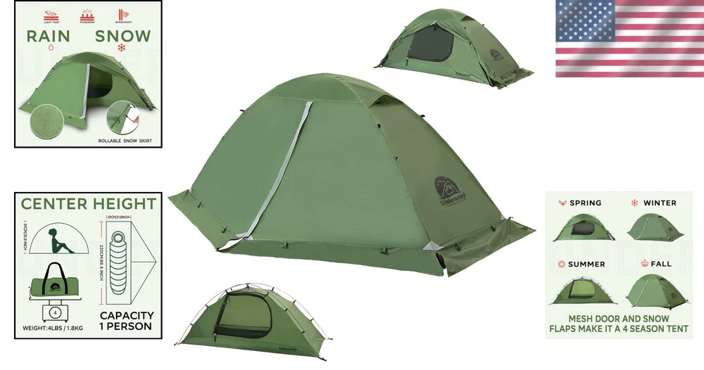Lightweight 1-Person 4-Season Waterproof Backpacking Tent for Cold Weather