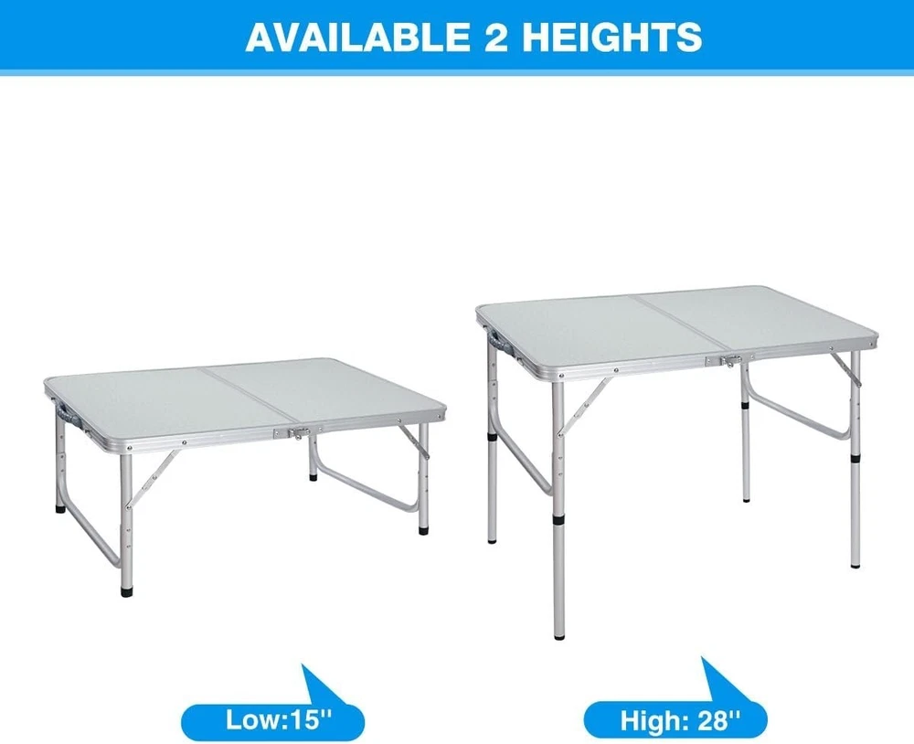 Folding Camping Table Aluminum 3ft Adjustable Height Lightweight Outdoor Picnic ‹ › ‹ › ‹ › ‹ › ‹ › ‹ › ‹ › ‹ › ‹ › Folding Camping Table - Aluminum Adjustable Height Experience the ultimate convenience with our 3ft Folding Camping Table, specially designed for outdoor enthusiasts and home use alike. Key Features: Adjustable Heights: Open size: 36"L x 24"W, adjustable from 15" to 28" to perfectly suit your needs. Convenience: Set up in under 1 minute and easily transport with a convenient carry handle. Lightweight Design: Weighs only 9lbs yet holds up to a remarkable 70lbs, making it ideal for both kitchen and outdoor environments. Multi-Functionality: Versatile use as a picnic table, RV serving table, BBQ station, or small patio table for gatherings. Warm Tips: Keep away from fire, ensure the table is laid on flat ground, and adjust the height by twisting the black feet at the end of the legs. Benefits: Effortlessly adjust the table height to meet your specific requirements. Experience quick setup and takedown for spontaneous gatherings or travelers. Enjoy a stable, lightweight design that can support all your picnic essentials. Perfect for various outdoor activities including camping, fishing, and outdoor concerts. Why choose our Folding Camping Table? Designed for both functionality and elegance, our Folding Camping Table offers adjustable heights to cater to your needs, whether for a relaxed picnic or an outdoor feast. Its lightweight yet sturdy composition makes it easy to transport, while the multi-functionality positions it as an essential companion for every adventure you embark on. Don't compromise on quality or adaptability - make this Folding Camping Table a part of your outdoor gear collection today! Shipping Free & Fast Shipping - We offer free shipping to most of the USA with a normal delivery time of 3-7 days. However, due to the current situation, additional delivery time (up to 3 weeks) may be required for some items. Alternative Carriers - We may use alternative carriers (e.g. USPS, FedEx, UPS, etc.) to ensure your package arrives safely and on time. Due to the use of multiple carriers, we are unable to provide a tracking number automatically. Handling Time - Orders are processed and shipped within 1-2 business days of receiving cleared payment. Shipping Restrictions - Shipping to Alaska, Hawaii, Puerto Rico, Guam, and other US territories may incur shipping charges or delivery restrictions. Please contact us before ordering, or your order can be refunded/cancelled. State Restrictions - There may be restrictions based on your state of purchase. For example, certain items may not be shipped to California due to state regulations. Contact for Tracking Updates - If you require tracking updates or have any concerns about the delivery of your order, please feel free to contact us, and we will be happy to assist you. Return 30-Day Hassle-Free Returns - We want you to be completely satisfied with your purchase. If you are not, you can return the item within 30 days of receiving it for a full refund or exchange. Easy Return Process - To start a return, simply contact us and we will provide you with a prepaid return shipping label and detailed instructions. Restocking Fee - There are no restocking fees for returns. However, the buyer is responsible for return shipping costs if the return is not due to a seller's error. Refund Processing Time - Refunds will be processed within 5 business days of receiving the returned item in its condition. Payment We accept all major credit cards, PayPal, and Apple Pay for your convenience. Your payment information is secure and encrypted to ensure a safe and seamless transaction. Please complete your payment within 3 days of purchase to avoid any delays in shipping. Feedback Your feedback is extremely important to us. We strive to provide the best products and customer service possible. If you are satisfied with your purchase, please take a moment to leave us a positive review. If you have any concerns or issues with your order, please contact us before leaving negative feedback. We are committed to resolving any problems and ensuring your satisfaction. Contact Us If you have any questions or concerns, please feel free to out to our customer support team. You can contact us through the eBay messaging system. We are available Monday to Friday, 9:00 am to 5:00 pm EST, and we will do our best to respond to your inquiry within 24 hours. Buy it now and enjoy a pleasant shopping experience! Folded Dimensions: 24x18x3 Item Height: 28 Inches Item Width: 36 Inches Item Weight: 9 lbs Unit Quantity: 70 Frame Material: Aluminum Tabletop Material: Aluminum Seat Material: Aluminum Set Includes: Table Suitable For: Camping,Picnic,Outdoor,BBQ,Travel Features: Foldable,Lightweight,Adjustable Height Type: Camping Table Color: White Weight Capacity: 70 lb Unit Type: lb