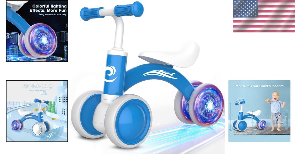 Lightweight Baby Balance Bike with Colorful Wheels - Perfect 1st Birthday Gift! ‹ › ‹ › ‹ › ‹ › ‹ › ‹ › ‹ › ‹ › ‹ › Lightweight Baby Balance Bike with Colorful Wheels Perfect 1st Birthday Gift! Features: Colorful Lighting Design: Our innovative, colorful lighting rear wheel enhances the fun for your child. No batteries needed; simply spin the wheels to glow! Best Partner for Kids: Designed for toddlers aged 10 to 36 . This baby balance bike brings joy and fun while boosting essential skills like balance, steering, and coordination. Safety First: With no pedals and fully widened closed wheels, we ensure that your baby's feet are safe from clamping. The 135° steering limit prevents side falls, and there are no sharp parts for added safety. Sturdy & Comfortable Design: Crafted from durable carbon steel, this balance bike features a soft non-slip EVA handle and a comfortable PU seat, providing a stable and enjoyable riding experience every day. Easy to Assemble & Carry: No tools are required! Our built-in buckle design allows for effortless assembly in under three minutes. Weighing just 4.6 lbs, it's lightweight enough for both parents and their little ones to carry. Why Choose Our Baby Balance Bike? This balance bike is a perfect gift for children celebrating their first birthday! Designed with safety in mind and emphasizing fun, it's a wonderful tool for developing mobility and confidence in young riders. Tested for safety and material quality, this bike is beautifully packaged, making it an ideal choice for any occasion. Surprise your little one with a world of colorful fun and adventure as they embark on their journey of discovery – order the Lightweight Baby Balance Bike today! Shipping Free & Fast Shipping - We offer free shipping to most of the USA with a normal delivery time of 3-7 days. However, due to the current situation, additional delivery time (up to 3 weeks) may be required for some items. Alternative Carriers - We may use alternative carriers (e.g. USPS, FedEx, UPS, etc.) to ensure your package arrives safely and on time. Due to the use of multiple carriers, we are unable to provide a tracking number automatically. Handling Time - Orders are processed and shipped within 1-2 business days of receiving cleared payment. Shipping Restrictions - Shipping to Alaska, Hawaii, Puerto Rico, Guam, and other US territories may incur shipping charges or delivery restrictions. Please contact us before ordering, or your order can be refunded/cancelled. State Restrictions - There may be restrictions based on your state of purchase. For example, certain items may not be shipped to California due to state regulations. Contact for Tracking Updates - If you require tracking updates or have any concerns about the delivery of your order, please feel free to contact us, and we will be happy to assist you. Return 30-Day Hassle-Free Returns - We want you to be completely satisfied with your purchase. If you are not, you can return the item within 30 days of receiving it for a full refund or exchange. Easy Return Process - To start a return, simply contact us and we will provide you with a prepaid return shipping label and detailed instructions. Restocking Fee - There are no restocking fees for returns. However, the buyer is responsible for return shipping costs if the return is not due to a seller's error. Refund Processing Time - Refunds will be processed within 5 business days of receiving the returned item in its condition. Payment We accept all major credit cards, PayPal, and Apple Pay for your convenience. Your payment information is secure and encrypted to ensure a safe and seamless transaction. Please complete your payment within 3 days of purchase to avoid any delays in shipping. Feedback Your feedback is extremely important to us. We strive to provide the best products and customer service possible. If you are satisfied with your purchase, please take a moment to leave us a positive review. If you have any concerns or issues with your order, please contact us before leaving negative feedback. We are committed to resolving any problems and ensuring your satisfaction. Contact Us If you have any questions or concerns, please feel free to out to our customer support team. You can contact us through the eBay messaging system. We are available Monday to Friday, 9:00 am to 5:00 pm EST, and we will do our best to respond to your inquiry within 24 hours. Buy it now and enjoy a pleasant shopping experience! Unit Quantity: 4.6 Material: Carbon Steel,PU,EVA Features: Lightweight,Colorful Lighting Design,No Pedal,4 Silence Wheels,Soft Seat,Widened Closed Wheel,135° Steering Limit,No Sharp Parts,Easy to Assemble,Tool-Free Installation,Portable,Non-Slip Handle Bike Type: Balance Bike Suspension Type: No Suspension Department: Unisex Kids Color: Multicolor Item Weight: 4.6 lb Unit Type: lb