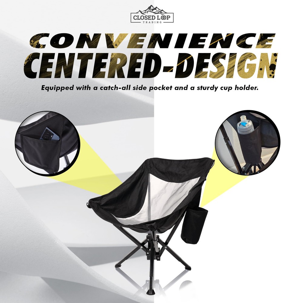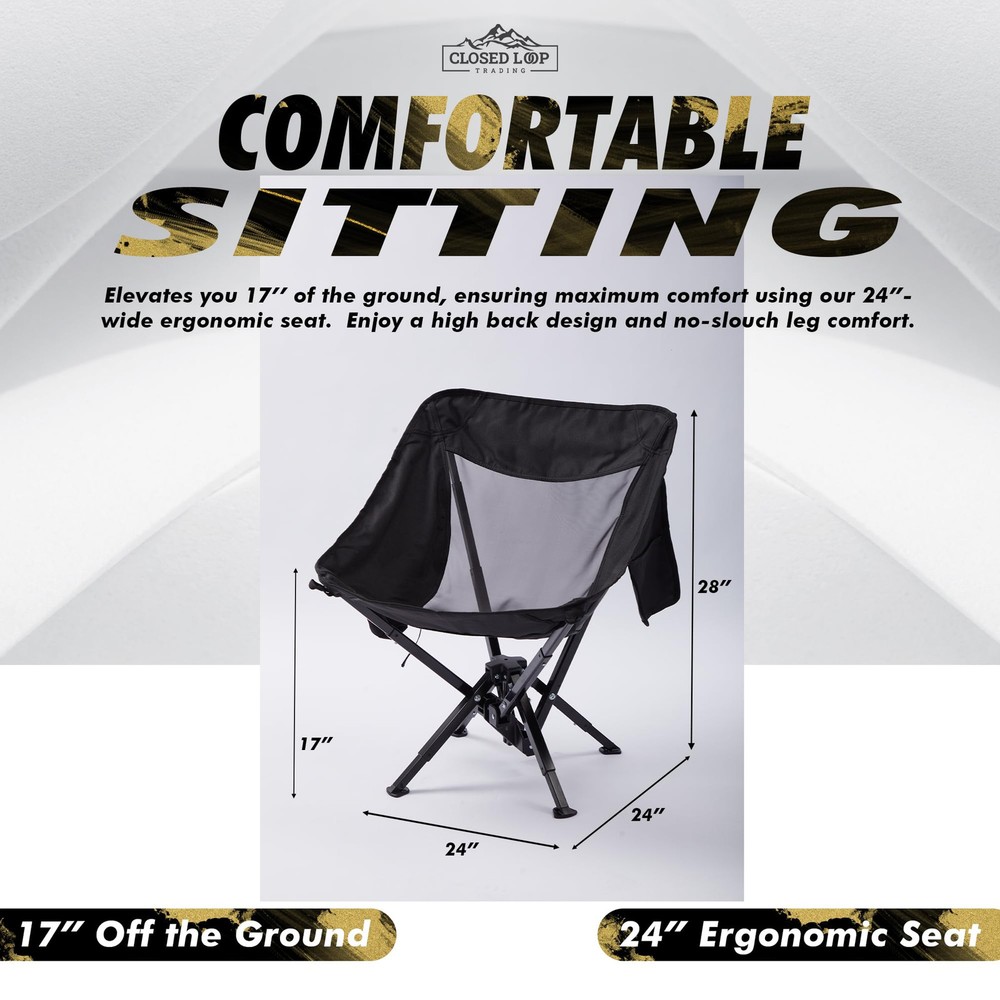 PORTABLE & COMPACT - Quickly collapses to compact size of 5” x 18’’. Our lightweight folding chair comes with a packable storage carry bag, and adjustable strap for easy travel. Keep in your car trunk ready for any and all adventures! QUICK & EASY SETUP - No assembly required! Effortlessly set up your outdoor folding chair to FULL SIZE in just seconds! Just undo the strap and extend the arms – no poles, no hassle. EXTREMELY COMFORTABLE: Get comfy anywhere with our folding chair! Provides a full 17” off the ground, offering optimal leg comfort and a high back. Get in and out with ease. VERSATILE OUTDOOR ESSENTIAL: Your ultimate go anywhere chair! Whether relaxing outside on your lawn or cheering at field sporting events, our portable folding chair excels! Quick setup, compact design - perfect for camping, fishing, tailgating, beach days, and open air festivals. ROBUST STABILITY: Designed for heavy duty use outdoors - our folding chair is a sturdy and stable choice! Solid base construction ensures no tipping, perfect for both adults and kids alike, supporting up to 265 lbs. Ideal for heavy duty situations, yet easily portable.