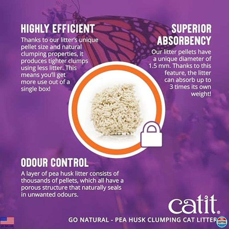 Catit - Go Natural Pea Husk Clumping Cat Litter - Lightweight, Dust Free, Easy Cleaning & Scooping, Flushable Kitty Litter with Odor Control & Subtle Fragrance - 12.3 Lbs, Vanilla Scented Description Discover the eco-friendly Catit Go Natural Pea Husk Clumping Cat Litter, a 14.8 lb pack designed for a cleaner, fresher home. This innovative litter absorbs moisture and locks in odors, making it perfect for multiple cats while minimizing tracking. Give your feline friend a comfortable and private bathroom experience with this natural alternative to traditional clay litter. Product reference: B08GVXR7V9. Features Tight Clumping - Catit Go Natural Pea Husk Litter is a strong clumping cat litter for easy and dust-free litter box management. Catit’s litter composition decomposes naturally and can be safely flushed down the toilet, reducing waste and minimizing impact Gentle On Paws - Made from 100% natural pea husks, this litter is gentle on your cat's paws and effective at controlling odors. Designed to minimize tracking around your home while offering a soft and gentle texture that's comfortable for your cat's sensitive paws, promoting a happy and stress-free litter box experience Convenient Packaging - This pack includes 12.3 lbs of natural cat litter, providing plenty of coverage for multiple cats or a single cat over an extended period of time. The packaging may vary but the quality remains consistent Dust Free – Cat litter dust may trigger allergic reactions in both cats and humans. Catit’s Pea Husk Cat Litter is 99% dust free. With exceptionally low dust, this litter is ideal for those with sensitive noses and eyes. As your kitty burrows, even the smallest pieces settle at the bottom, which helps to curb airborne dust No Harmful Chemicals or Additives - Rest assured that you are using a safe and natural product for your beloved feline companion. Catit Go Natural Pea Husk Clumping Cat Litter contains no artificial fragrances, dyes, or harsh chemicals that could harm your pet's health Shipping Free & Fast Shipping: We offer free shipping to most of the USA with a normal delivery time of 3-7 days. However, due to the current situation, additional delivery time (up to 3 weeks) may be required for some items. Alternative Carriers: We may use alternative carriers (e.g., USPS, FedEx, UPS) to ensure your package arrives safely and on time. Due to the use of multiple carriers, we are unable to provide a tracking number automatically. Handling Time: Orders are processed and shipped within 1-2 business days of receiving cleared payment. Shipping Restrictions: Shipping to Alaska, Hawaii, Puerto Rico, Guam, and other US territories may incur shipping charges or delivery restrictions. Please contact us before ordering, or your order can be refunded/cancelled. State Restrictions: Certain items may not be shipped to California due to state regulations. Contact for Tracking Updates: If you require tracking updates or have any concerns about the delivery of your order, please feel free to contact us, and we will be happy to assist you. Return Policy 30-Day Hassle-Free Returns: If you are not completely satisfied with your purchase, you can return the item for free within 30 days of receiving it for a full refund or exchange. Easy Return Process: Contact us, and we will provide you with a prepaid return shipping label and detailed instructions. No Restocking Fee: There are no restocking fees for returns. However, the buyer is responsible for return shipping costs if the return is not due to a seller's error. Refund Processing: Refunds will be processed within 1 business day of ...