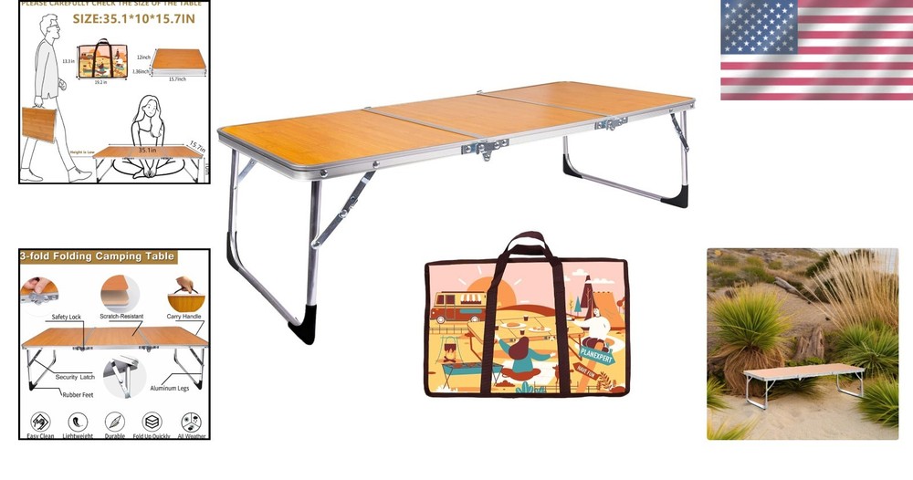 Portable Folding Camping Table Aluminum Lightweight Travel Picnic Portable ‹ › ‹ › ‹ › ‹ › ‹ › ‹ › ‹ › ‹ › ‹ › ‹ › ‹ › Portable Folding Camping Table - Aluminum Lightweight Travel Picnic Table Specifications: Weight: 4.5 lbs Packed Size: 17.6" x 11.8" x 2.3" (folded in half) Open Size: 35.4" x 16" x 9.8" Features: No assembly required; unfolds in seconds. Lightweight carrying handle for effortless transport. Sturdy design with thicker MDF tabletop and aluminum alloy frame. Stability ensured with non-slip U-shaped side supports and strong latches. Supports up to 40 lbs (evenly distributed). 33.5" leg distance provides comfortable foot space. Benefits: Versatile use: perfect for outdoor dining, gaming, or working. Space-saving design and easy to clean. Ideal for camping, hiking, fishing, or picnics. Gift-ready with a stylish carry bag included. Why Choose Our Portable Folding Camping Table? Elevate your outdoor experiences with our Portable Folding Camping Table, meticulously crafted for those who appreciate convenience and durability. Weighing only 4.5 lbs, it showcases a compact design that folds effortlessly for on-the-go adventures. Despite its lightweight feel, this table boasts an incredible stability, ensuring a safe and dependable surface for meals, games, and relaxation. With its spacious 35" x 16" tabletop, enjoy ample space for up to four people while its elegant design complements any outdoor setting. It makes an ideal gift for camping enthusiasts, travelers, or anyone who desires both functionality and style. Embrace the outdoors with ease - order your Portable Folding Camping Table today and redefine how you celebrate moments in nature! Shipping Free & Fast Shipping - We offer free shipping to most of the USA with a normal delivery time of 3-7 days. However, due to the current situation, additional delivery time (up to 3 weeks) may be required for some items. Alternative Carriers - We may use alternative carriers (e.g. USPS, FedEx, UPS, etc.) to ensure your package arrives safely and on time. Due to the use of multiple carriers, we are unable to provide a tracking number automatically. Handling Time - Orders are processed and shipped within 1-2 business days of receiving cleared payment. Shipping Restrictions - Shipping to Alaska, Hawaii, Puerto Rico, Guam, and other US territories may incur shipping charges or delivery restrictions. Please contact us before ordering, or your order can be refunded/cancelled. State Restrictions - There may be restrictions based on your state of purchase. For example, certain items may not be shipped to California due to state regulations. Contact for Tracking Updates - If you require tracking updates or have any concerns about the delivery of your order, please feel free to contact us, and we will be happy to assist you. Return 30-Day Hassle-Free Returns - We want you to be completely satisfied with your purchase. If you are not, you can return the item within 30 days of receiving it for a full refund or exchange. Easy Return Process - To start a return, simply contact us and we will provide you with a prepaid return shipping label and detailed instructions. Restocking Fee - There are no restocking fees for returns. However, the buyer is responsible for return shipping costs if the return is not due to a seller's error. Refund Processing Time - Refunds will be processed within 5 business days of receiving the returned item in its condition. Payment We accept all major credit cards, PayPal, and Apple Pay for your convenience. Your payment information is secure and encrypted to ensure a safe and seamless transaction. Please complete your payment within 3 days of purchase to avoid any delays in shipping. Feedback Your feedback is extremely important to us. We strive to provide the best products and customer service possible. If you are satisfied with your purchase, please take a moment to leave us a positive review. If you have any concerns or issues with your order, please contact us before leaving negative feedback. We are committed to resolving any problems and ensuring your satisfaction. Contact Us If you have any questions or concerns, please feel free to out to our customer support team. You can contact us through the eBay messaging system. We are available Monday to Friday, 9:00 am to 5:00 pm EST, and we will do our best to respond to your inquiry within 24 hours. Buy it now and enjoy a pleasant shopping experience! Folded Dimensions: 17.6''x11.8''x2.3'' Item Height: 9.8 Inches Item Width: 16 Inches Item Weight: 4.5 lbs Unit Quantity: 1 Frame Material: Aluminum Tabletop Material: Aluminum Set Includes: Table,Carrying Bag Suitable For: Camping,Hiking,Traveling,Fishing,Picnic,Beach,Backyard BBQ,Sporting Event,Tailgating Features: Foldable,Lightweight,Portable,Compact,Scratch Resistant,Stable,Easy to Clean Type: Camping Table Color: Brown Weight Capacity: 120 lb