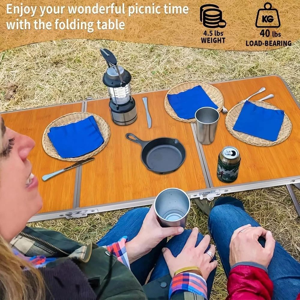 1. Absolutely love how this table sets up instantly without any fuss. It's incredibly lightweight yet feels sturdy enough for all our picnic gear. The carrying handle makes transport a breeze, and it stays perfectly stable even on uneven ground. Perfect for spontaneous outdoor adventures!
