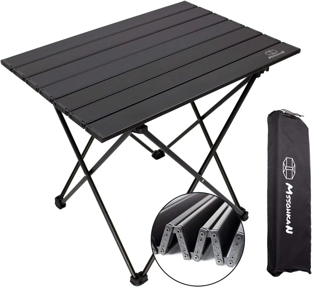 Camping Table Folding Portable Camp Side Table Aluminum Lightweight Carry Bag Beach Outdoor Hiking Picnics BBQ Cooking Dining Kitchen 🎁 [STABLE & DURABLE] MSSOHKAN provides a stable work surface for hobbyists. This camp table is made of heavy duty aluminium alloy, has a flat top and cross legs, and all four legs are equipped with skidproof foot cover, it stays stable in any flat terrain.The table legs use the high intension aluminium alloy,the bearing capacity is strong,it is not easy to bend and deformation. The aluminum frame and table top connection is compact, solid design can sustain maximum 55 pounds. 🔮 [PREMIUM MATERIAL & RUSTLESS] The table board is made of durable aluminum material, unlike wooden or nylon-top portable tables, the aluminum desktop covered with high-quality spray which are waterproof, anti-corrosion, ovenproof, scratch-resistant, and long-lasting use time and easy to clean by paper and cloth. You can also use table in the rain day because the table is without rusting. 💨 [LIGHTWEIGHT & FLODING] Light as a wing. The small-sized table weighs £2.20, the volume of the table is 16.1in×13.6in×11.5in. The middle-sized table weighs £3.20, the volume of the table is 22in×16in×16in. This camp side table is collapsible, both the table top and legs are using foldable design, it is easy to assemble and separate. The table fits easily into backpacks, cars, RV's, canoe, river rafts, motorcycle rear seats or wherever you may need it, and doesn't occupy any place. 🏖️ [EASY TO ASSEMBLE - NO TOOLS NEEDED] This sturdy camping table is composed of an aluminum X-shaped frame that is snapped together, which is designed to pop up and fold with ease. Its unique hinge design enables easy and robust connection to the table top. Just pop it open and attach the table top and you are ready to use it! You can even assemble this in one minute! It is so easy that a kid can do it! 📱 [MULTIPURPOSE & QUALITY ASSURANCE] The flodable camping table can not only be used indoor, but also be used for camping, fishig, hiking, beach, picnic, BBQ, cooking and dining. In addition, you can also use this multifunctional folding table to put your laptop, play board game or even serve as a bedside table. Such a small table provides great convenience for your life. If you are not satisfied with the folding table for any reason, please feel free contact us. Product Description MSSOHKAN foldable camping table The foldable camping table can not only be used indoor, but also be used for camping, fishing, hiking, beach, picnic, BBQ, cooking and dining. In addition, you can also use this multifunctional folding table to put your laptop, play board game or even serve as a bedside table. Such a small table provides great convenience for your life. 1. Roll up table top Different from the traditional design,the new no spring cord design is more convenient and stable. 2.Stable Grip The legs of this camping table are designed with an X-frame, which is in full compliance with the principle of triangular stability. The most important thing is the cross-legs with stable caps at the bottom, which have good stability on different terrains. 3.Unique Hinge Design Quick and easy to set up robust connection to the table top. Not easy to slip out. No extra tool needed! 4.Anti-slip Rubber Feet It can stand in all kinds of terrains stably. Such as the forest, the grass, the beach or the river. This table is perfect for all indoor & outdoor activities 1. Roll up table top 2.Stable Grip 3.Unique Hinge Design 4.Anti-slip Rubber Feet 1.All-Aluminum Material The aluminum desktop covered with high-quality spray which are waterproof, anti-corrosion, ovenproof, scratch-resistant, and long-lasting use time and easy to clean by paper and cloth. You can also use table in the rain day because the table is without rusting. 2.Foldable Design This camp side table is collapsible, both the table top and legs are using foldable design, it is easy to assemble and separate. The table is convenient to carry wherever, but also very durable. The bag puts all the parts together and is easy to store up this table. 3.Load Capacity Although this table is very light and portable, it is strong enough to provide load capacity up to 110 pounds. It is possible to place food and bowls on it during camping dinners without falling over. EASY TO ASSEMBLE - NO TOOLS NEEDED Choose proper sizes - choose the best for you The table are specially designed with Low height, so you can use it with/without a chair … the table is roughly the height of an adult’s knee height which is extremely approachable! Unextended Seating Capacity 2 Is Customizable? No Number of Items 1 Table design Dining Table Material Type Aluminum Is Electric No Is Stain Resistant No Model Number 791319280428 Frame Material Type Metal Unit Count 1.0 Count Includes All Assembly Tools No Product Dimensions 5.9"D x 17.2"W x 2.6"H Seating Capacity 2 Tilting No Shape Square Maximum Weight Recommendation 55 Pounds Base Aluminum Extended Length 16 Inches Number Of Shelves 1 Item Weight 22 Pounds Frame Material Metal Included Components Assembly Guide Is the item resizable? No Top Material Type Aluminum Shape Square Item Weight 2.2 Pounds Recommended Number of People for Assembly 1 Size 16"D x 11"W x 15"H Top Color Blue Base To Top Distance 16 Inches Is Foldable Yes Item Height 2.6 inches Color Black Item Dimensions D x W x H 5.9"D x 17.2"W x 2.6"H Furniture Finish Aluminum Indoor Outdoor Usage Outdoor, Indoor Handle Material Aluminum Handle Color Black Base Type Leg Furniture Base Movement Glide Table Design Dining Table Style Name American Top Material Type Aluminum 17.2 "h x 5.9 "h x 2.6 "h. Weight: 2.2 lb Shipping from the USA All of our products are shipped from the USA, ensuring quick delivery to your destination. Payment We offer the following payment methods: PayPal, credit card, bank transfer, and eBay's secure payment system. Free Shipping & Free Returns Shipping within the USA is F