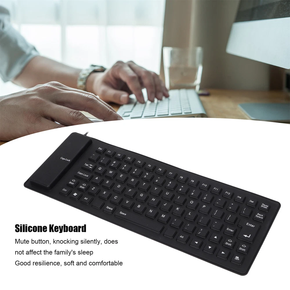 Product Description If you have any questions, please contact customer service first, do not open disputes easily, thank you! Features: 1、Fully Sealed Design:Silicone keyboard is waterproof, dust proof, oil proof, acid proof, and can be used in any harsh environment. 2、Lightweight Portable:Soft silicone keyboard can be crimped and stuffed into the bag at will, which is convenient to carry and save space. 3、Various Colors:Foldable silicone keyboard has various colors, three colors can be selected, and the key text will never fall off and will not fade. 4、Mute Button:The 85 keys silicone keyboard is silent when tapping, which can achieve complete mute without affecting family members' sleep. 5、Soft Comfortable:Rollable keyboard has good resilience, soft and comfortable touch, comfortable hand feeling, and protects fingers from injury. Specification: Material:Silicone Number of Keys:85 Keys Function:Waterproof, Dustproof and Silent Interface:USB Temperature Range: Temperature Difference Between -40-80℃ Package Includes: 1PCS*Silicone Keyboard About Us We accept all payments authorized by eBay. About Us We accept all payments authorized by eBay. powered by
