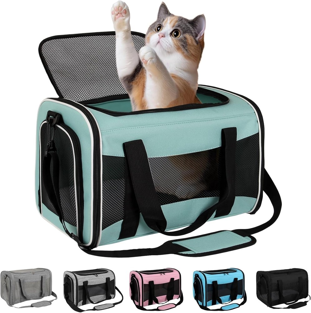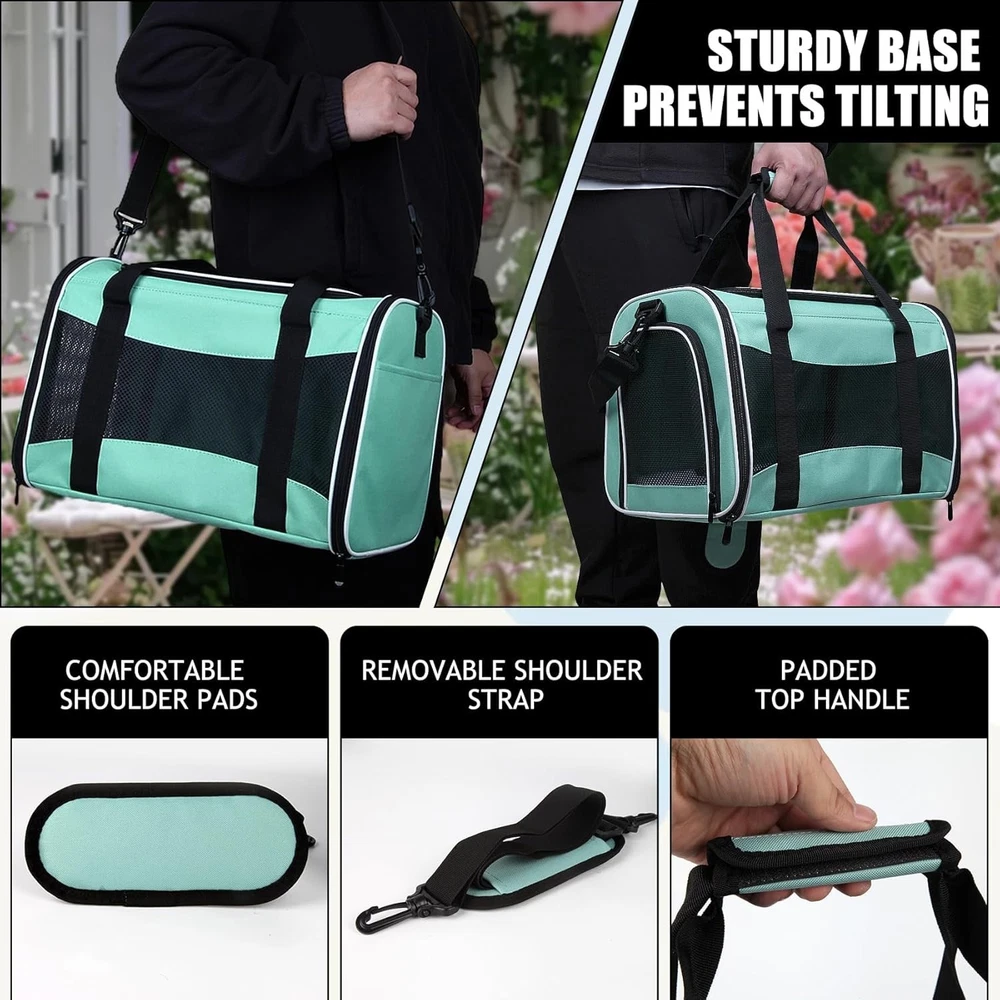 This carrier is a game-changer for pet travel! The lightweight design makes it super easy to carry, while the sturdy frame keeps its shape. My pup stays cool thanks to the three-sided mesh ventilation, and the zippered openings make it simple to get them in and out. The materials feel durable yet soft, and the adjustable strap is a nice touch. Perfect for trips, vet visits, or just running errands—highly recommend for small dogs!